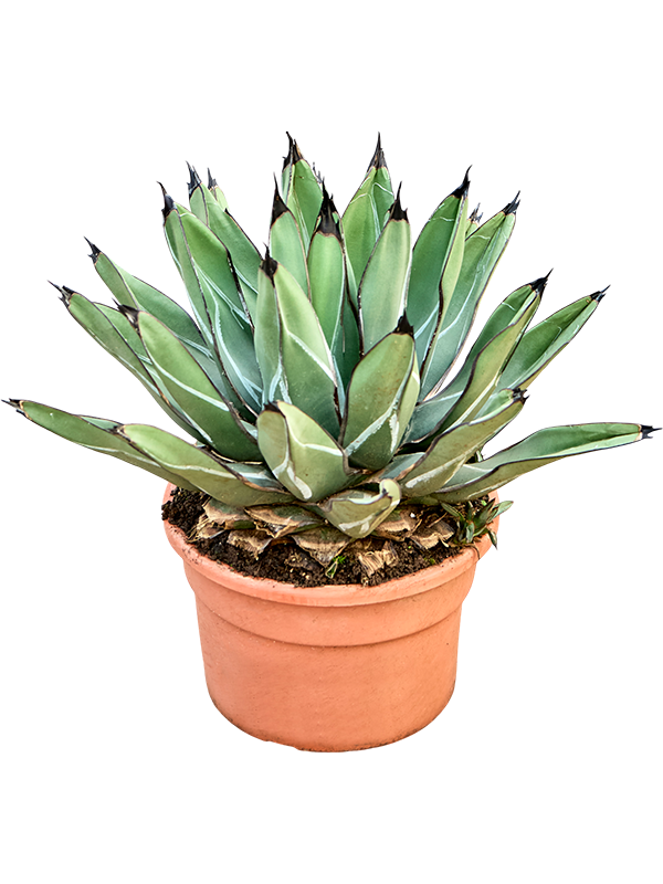 De verzorging van de Agave ferdinandi 'Regis' is eenvoudig en ideaal voor zowel beginnende als ervaren plantenliefhebbers. Deze succulent heeft behoefte aan weinig water; laat de grond tussen de gietbeurten goed opdrogen om wortelrot te voorkomen. Hij gedijt het beste op een lichte plek, maar kan ook met wat minder licht leven. Zorg ervoor dat de temperatuur minimaal 15 °C is, zodat de plant zich optimaal kan ontwikkelen.