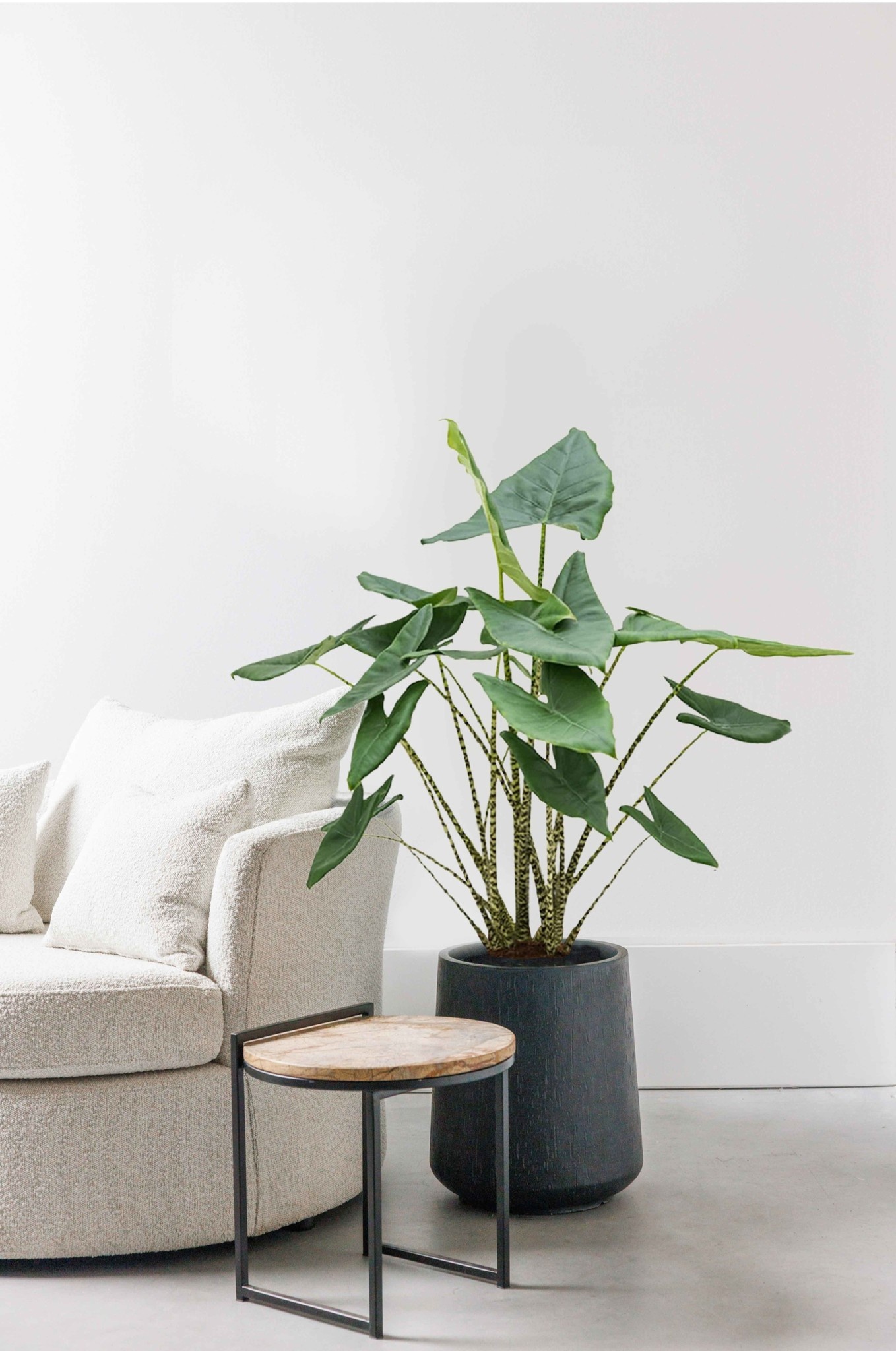 De Alocasia is een kamerplant die niet zo snel over het hoofd zal worden gezien, want de enorme bladeren kunnen wel 1 meter lang worden! Dit blijkt ook wel uit de bijnamen van de Alocasia: onder andere Olifantsoor en Reuzentaro. Gelukkig is het, zelfs met de grote bladeren, niet de moeilijkste plant om te verzorgen.
