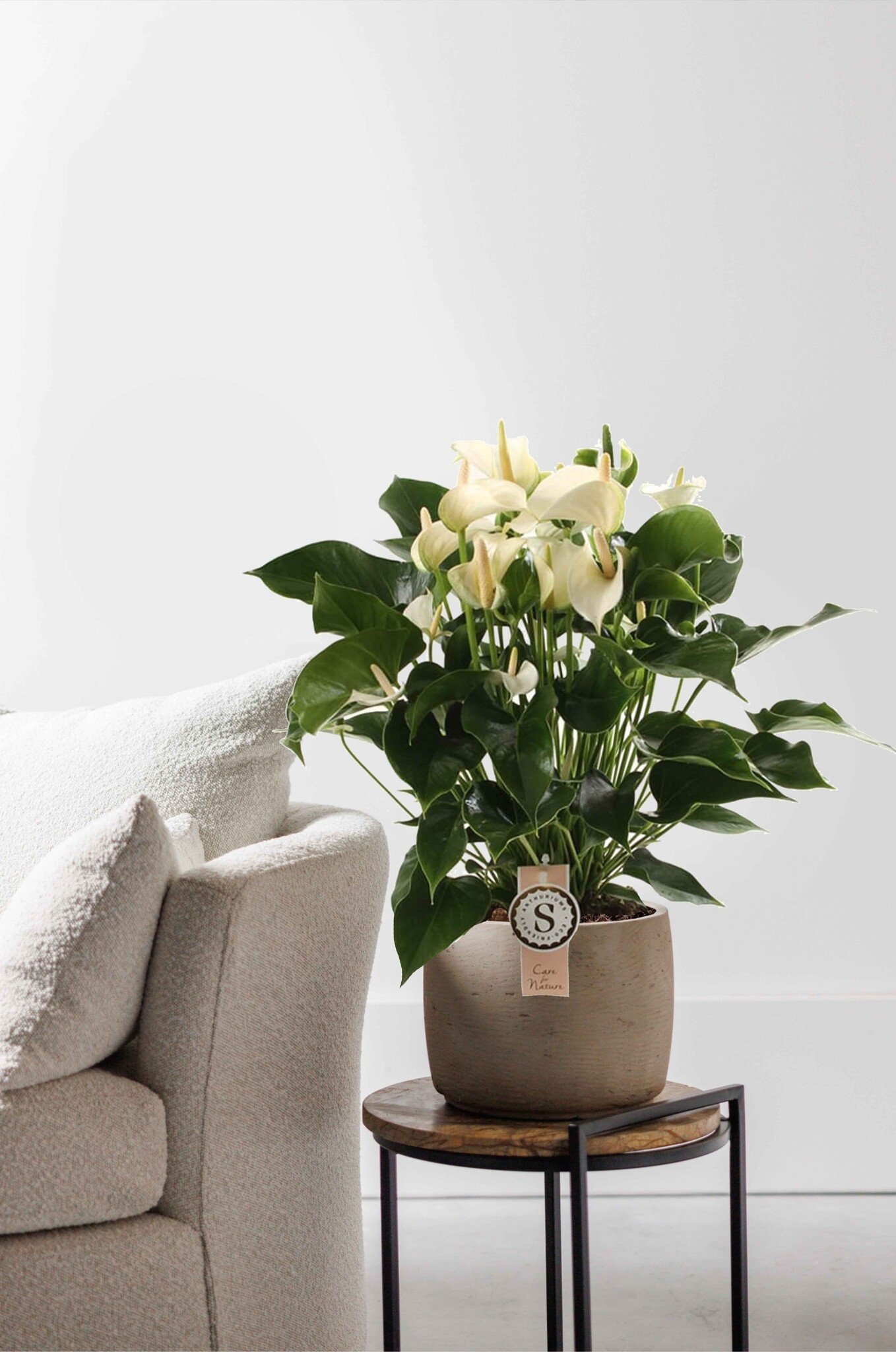 De Anthurium kan het beste op een lichte plek staan zonder direct zonlicht. De potgrond moet vochtig blijven, dus geef de plant weer water als de grond bijna droog is. Afgezien van de wintermaanden, heeft de Anthurium 1x per 2 maanden extra voeding nodig om gezond te blijven.