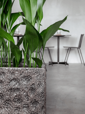 Onze basis opmaak bestaat uit semi hydro, dat betekent dat wij vanaf een potmaat van 20 centimeter en groter, de planten rondom de kwekersaarde afstrooien met hydrokorrels. Hierbij heeft u als extra keuze om een watermeter toe te voegen en of u de bovenkant van de pot wilt laten afstrooien met houtsnippers.