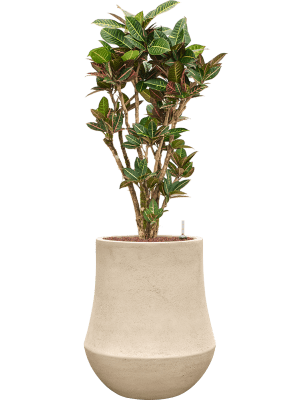 Onze basis opmaak bestaat uit semi hydro, dat betekent dat wij vanaf een potmaat van 20 centimeter en groter, de planten rondom de kwekersaarde afstrooien met hydrokorrels. Hierbij heeft u als extra keuze om een watermeter toe te voegen en of u de bovenkant van de pot wilt laten afstrooien met houtsnippers.