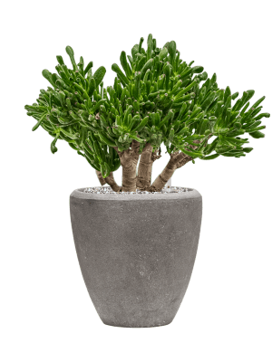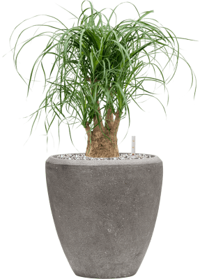 Onze basis opmaak bestaat uit semi hydro, dat betekent dat wij vanaf een potmaat van 20 centimeter en groter, de planten rondom de kwekersaarde afstrooien met hydrokorrels. Hierbij heeft u als extra keuze om een watermeter toe te voegen en of u de bovenkant van de pot wilt laten afstrooien met houtsnippers.