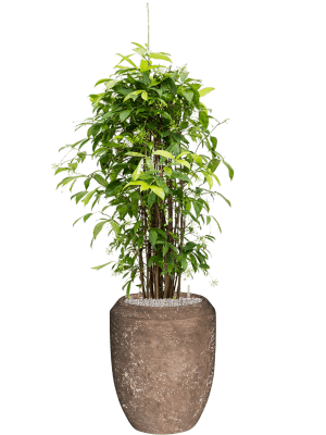 Onze basis opmaak bestaat uit semi hydro, dat betekent dat wij vanaf een potmaat van 20 centimeter en groter, de planten rondom de kwekersaarde afstrooien met hydrokorrels. Hierbij heeft u als extra keuze om een watermeter toe te voegen en of u de bovenkant van de pot wilt laten afstrooien met houtsnippers.