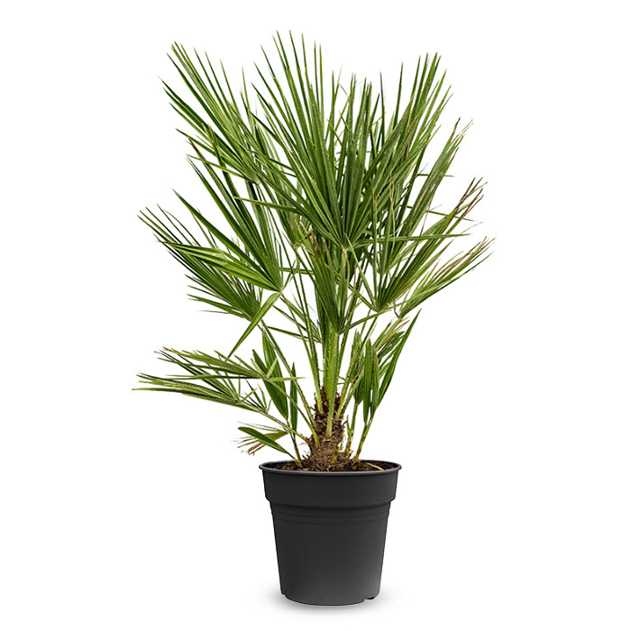 Zet een tropische plant als de Chamaerops op een lichte tot zonnige plek en geef wekelijks water. In de winter heeft de plant minder water nodig, dus geef dan 1x per 2 weken water. De Chamaerops heeft maar 1x per jaar extra voeding nodig, niet in de winter.