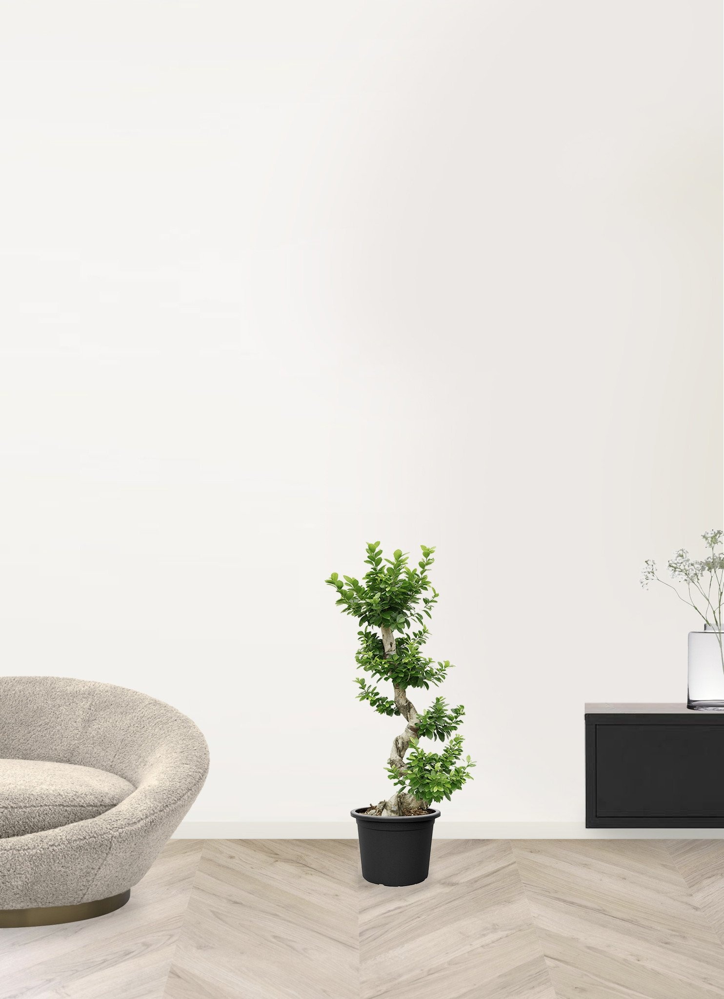 Dat de Bonsai een bijzondere plant is hoeven we u waarschijnlijk niet meer te vertellen. Voordat de Bonsai bij u binnen staat, heeft deze boom al 15 jaar speciale verzorging achter de rug om tot deze bijzondere groei te komen en een reis vanuit China of Maleisië omdat de boom daar wordt gekweekt.
