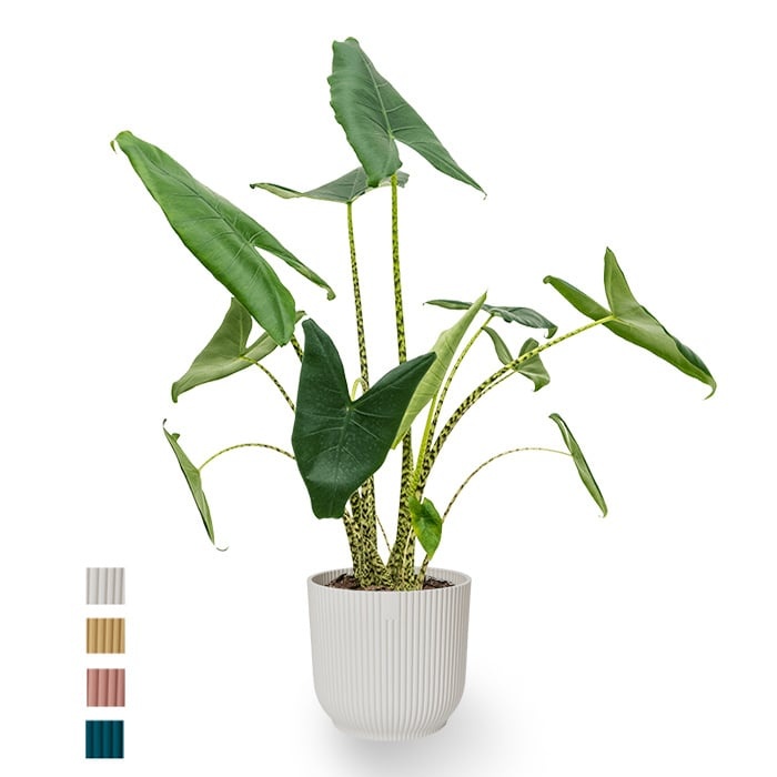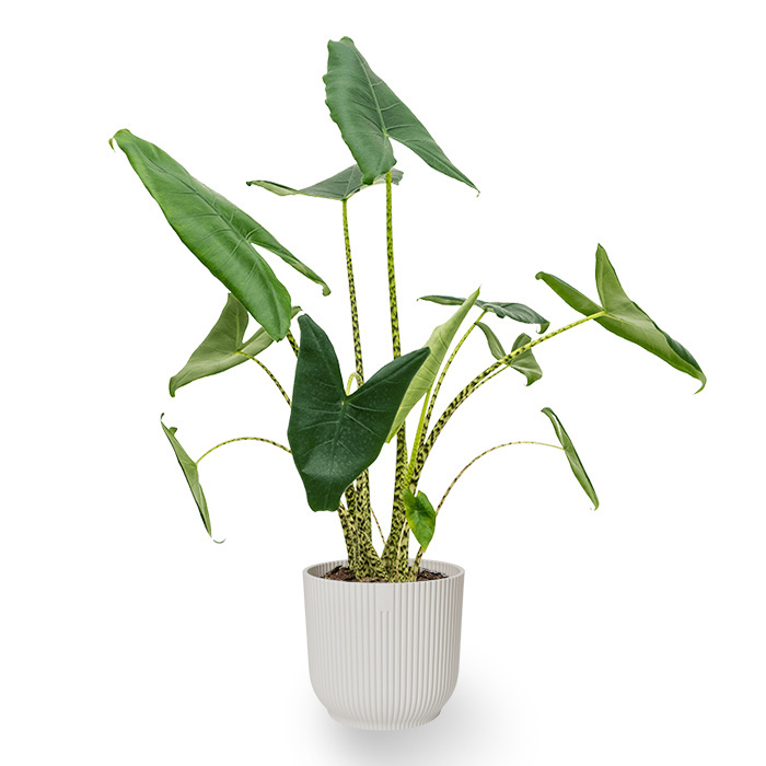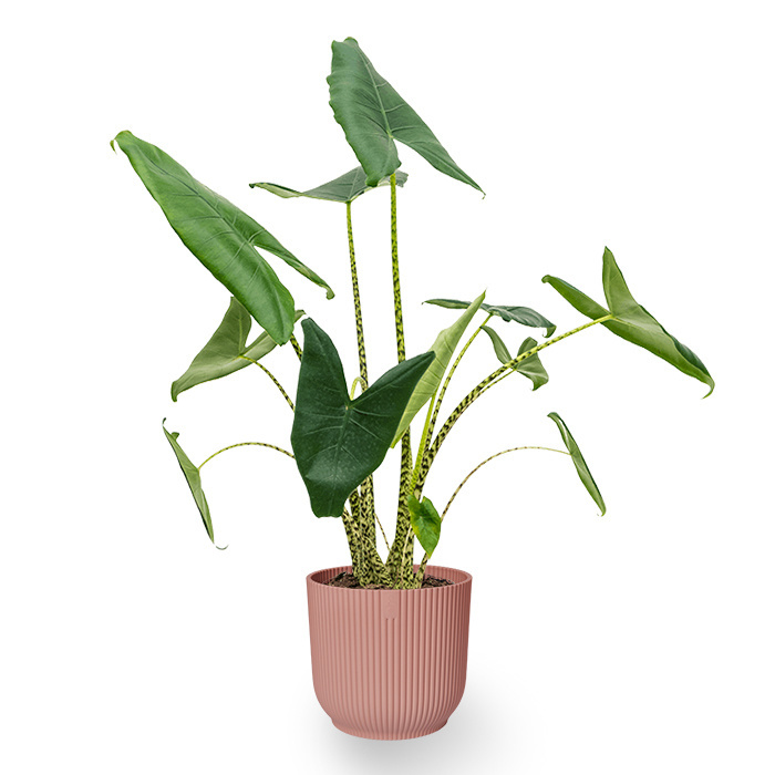 L'Alocasia est une plante qui regroupe de nombreuses espèces de feuilles différentes. Ses grandes feuilles, qui peuvent parfois atteindre un mètre de long, sont également appelées Oreilles d'éléphant. C'est donc un véritable accroche-regard dans votre intérieur.