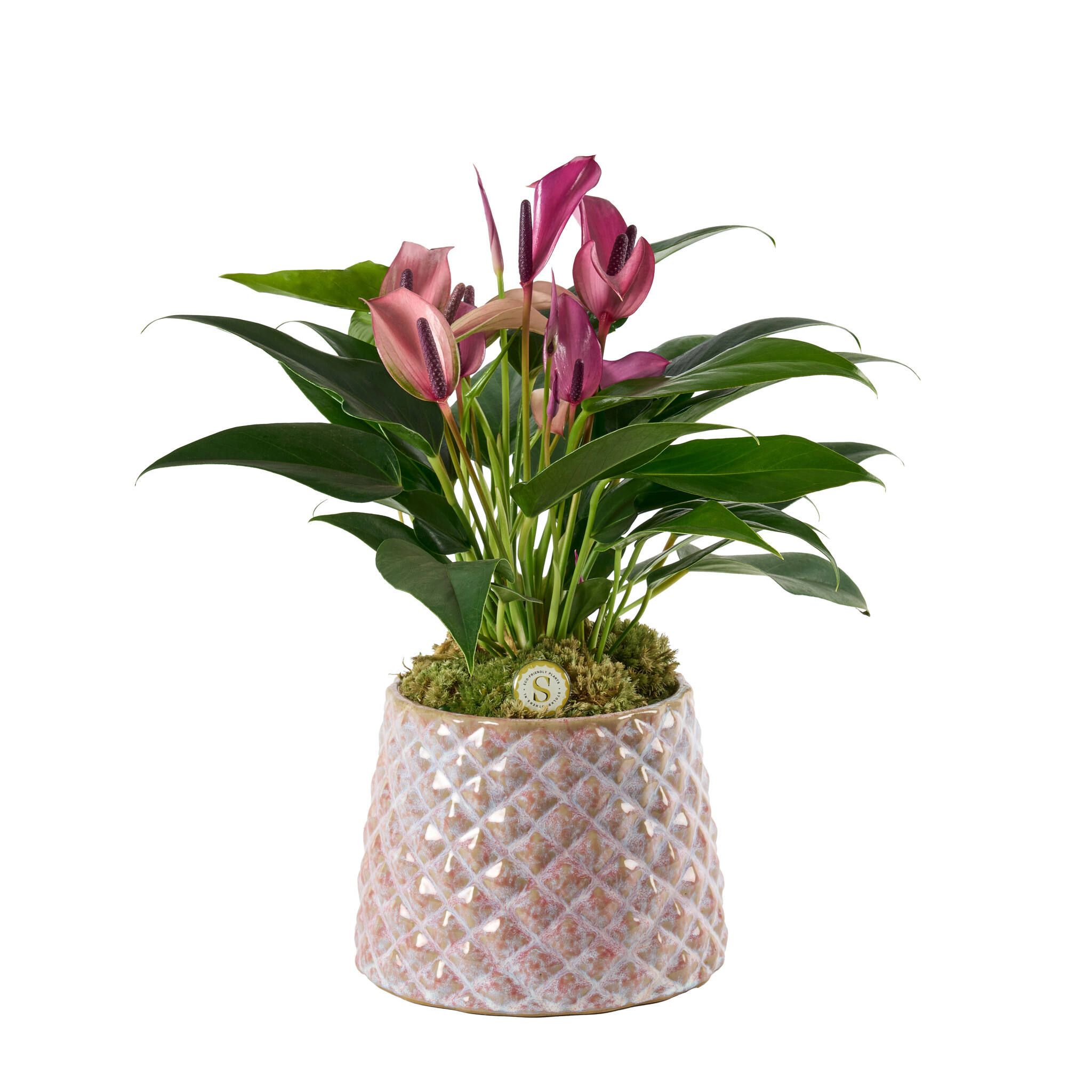L'Anthurium, ou plante flamant rose, est une plante tropicale très populaire comme plante d'intérieur. Cela s'explique par plusieurs raisons : les anthuriums sont faciles d'entretien et sont disponibles dans de nombreuses couleurs différentes. Grâce à sa couleur et à sa forme, l'anthurium se démarquera vraiment dans votre intérieur !