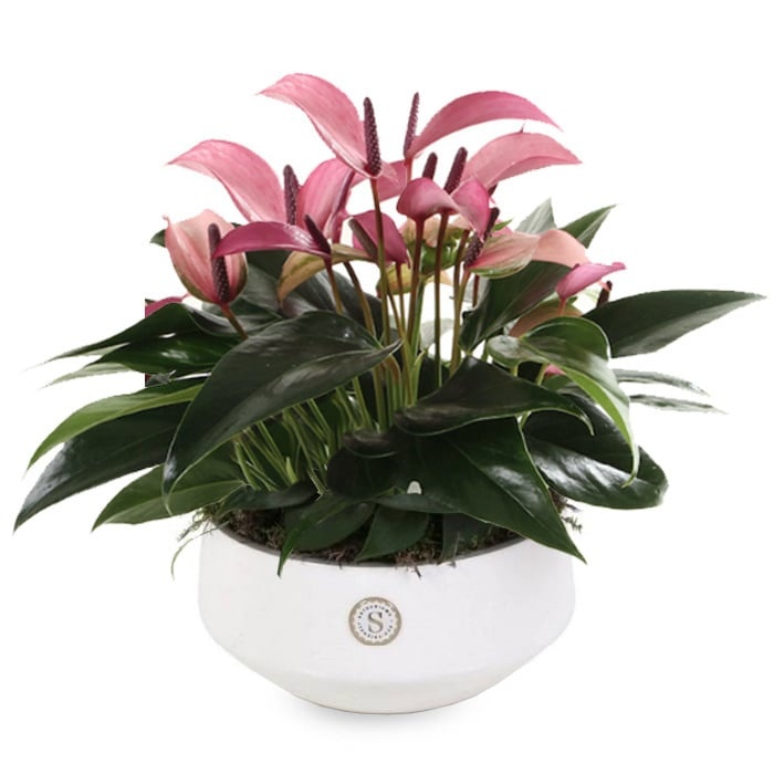 L'Anthurium, ou plante flamant rose, est une plante tropicale très populaire comme plante d'intérieur. Cela s'explique par plusieurs raisons : les anthuriums sont faciles d'entretien et sont disponibles dans de nombreuses couleurs différentes. Grâce à sa couleur et à sa forme, l'anthurium se distinguera vraiment dans votre intérieur !