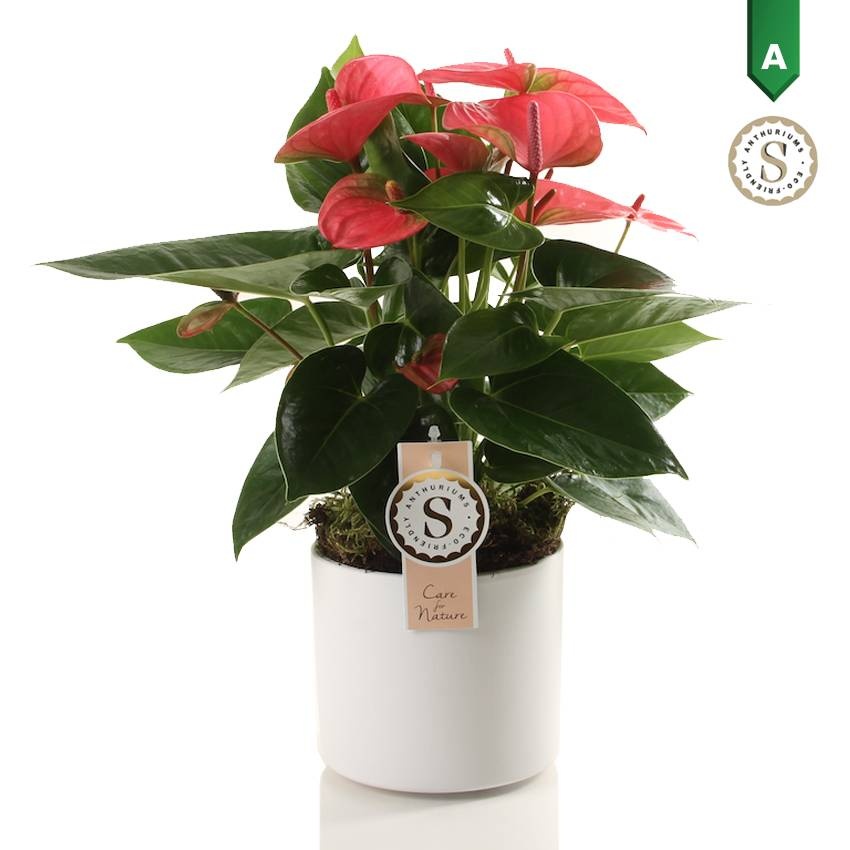 L'Anthurium, ou plante flamant rose, est une plante tropicale très populaire comme plante d'intérieur. Il y a plusieurs raisons à cela : les anthuriums sont faciles d'entretien et sont disponibles dans de nombreuses couleurs différentes. Grâce à sa couleur et sa forme, l'anthurium se démarquera vraiment dans votre intérieur !