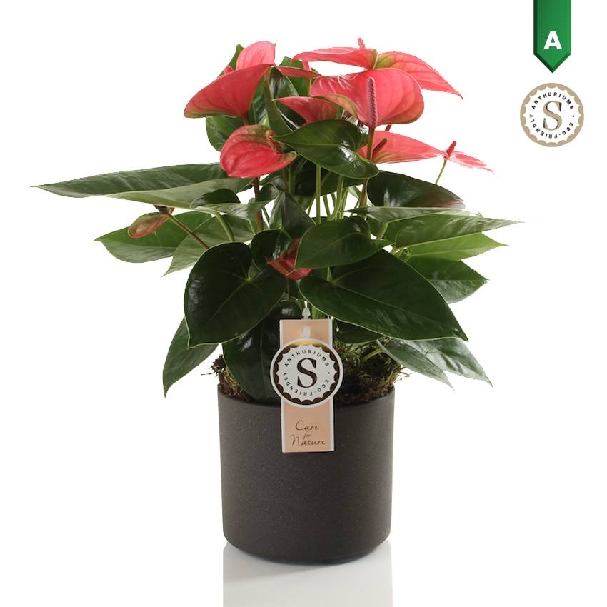 L'Anthurium, ou plante flamant rose, est une plante tropicale très populaire comme plante d'intérieur. Cela s'explique par plusieurs raisons : les anthuriums sont faciles d'entretien et sont disponibles dans de nombreuses couleurs différentes. Grâce à sa couleur et à sa forme, l'anthurium se démarquera vraiment dans votre intérieur !