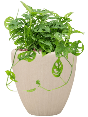 Onze basis opmaak bestaat uit semi hydro, dat betekent dat wij vanaf een potmaat van 20 centimeter en groter, de planten rondom de kwekersaarde afstrooien met hydrokorrels. Hierbij heeft u als extra keuze om een watermeter toe te voegen en of u de bovenkant van de pot wilt laten afstrooien met houtsnippers.