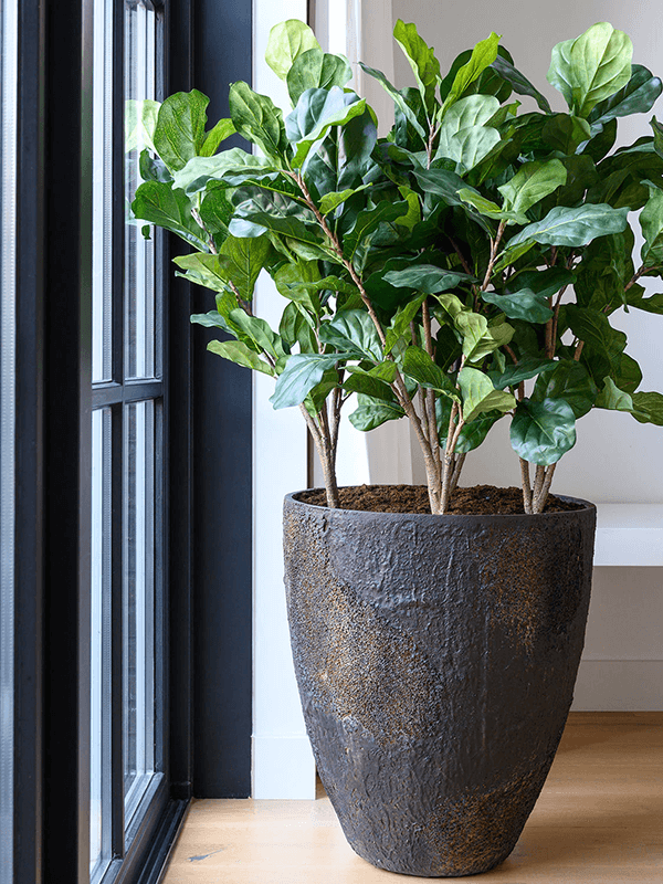 Ce pot de fleurs en ficonstone est fabriqué à la main et se compose d'un mélange de fibre de verre, de ciment, de sable et de pierre en poudre. Le ficonstone a un aspect naturel et est très durable. Le matériau est pratiquement incassable et l'intérieur du pot de fleurs n'absorbe pas l'eau. Cela rend le pot de fleurs Dax également résistant au gel et il conserve sa forme à des températures plus élevées.