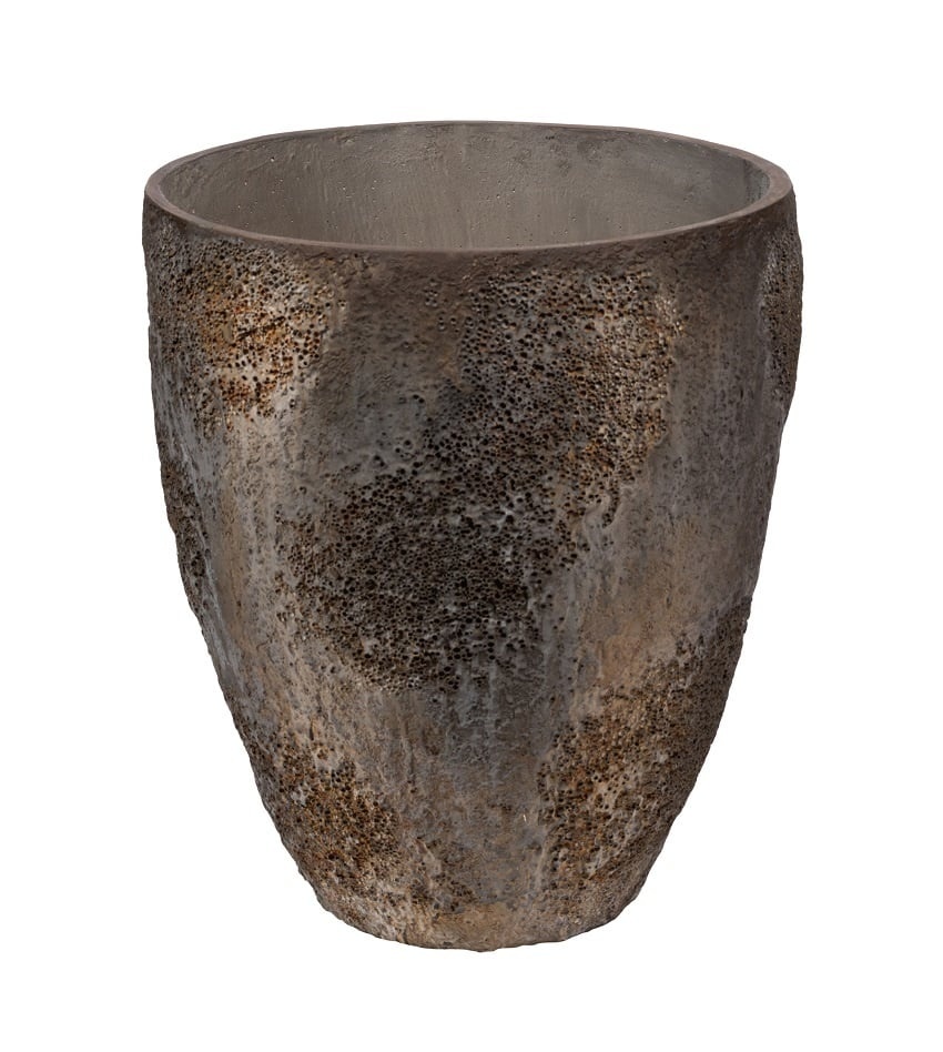 Ce pot de fleurs en ficonstone est fabriqué à la main et se compose d'un mélange de fibre de verre, de ciment, de sable et de pierre en poudre. Le ficonstone a un aspect naturel et est très durable. Le matériau est pratiquement incassable et l'intérieur du pot de fleurs n'absorbe pas l'eau. Cela rend le pot de fleurs Bernd également résistant au gel et il conserve sa forme à des températures plus élevées.