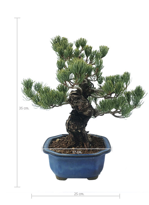 Au Japon, cette espèce de pin peut atteindre 20 à 25 mètres de haut, mais ici, elle ne dépasse pas 5 mètres. Ce pin blanc du Japon est souvent utilisé comme matériel pour bonsaï.