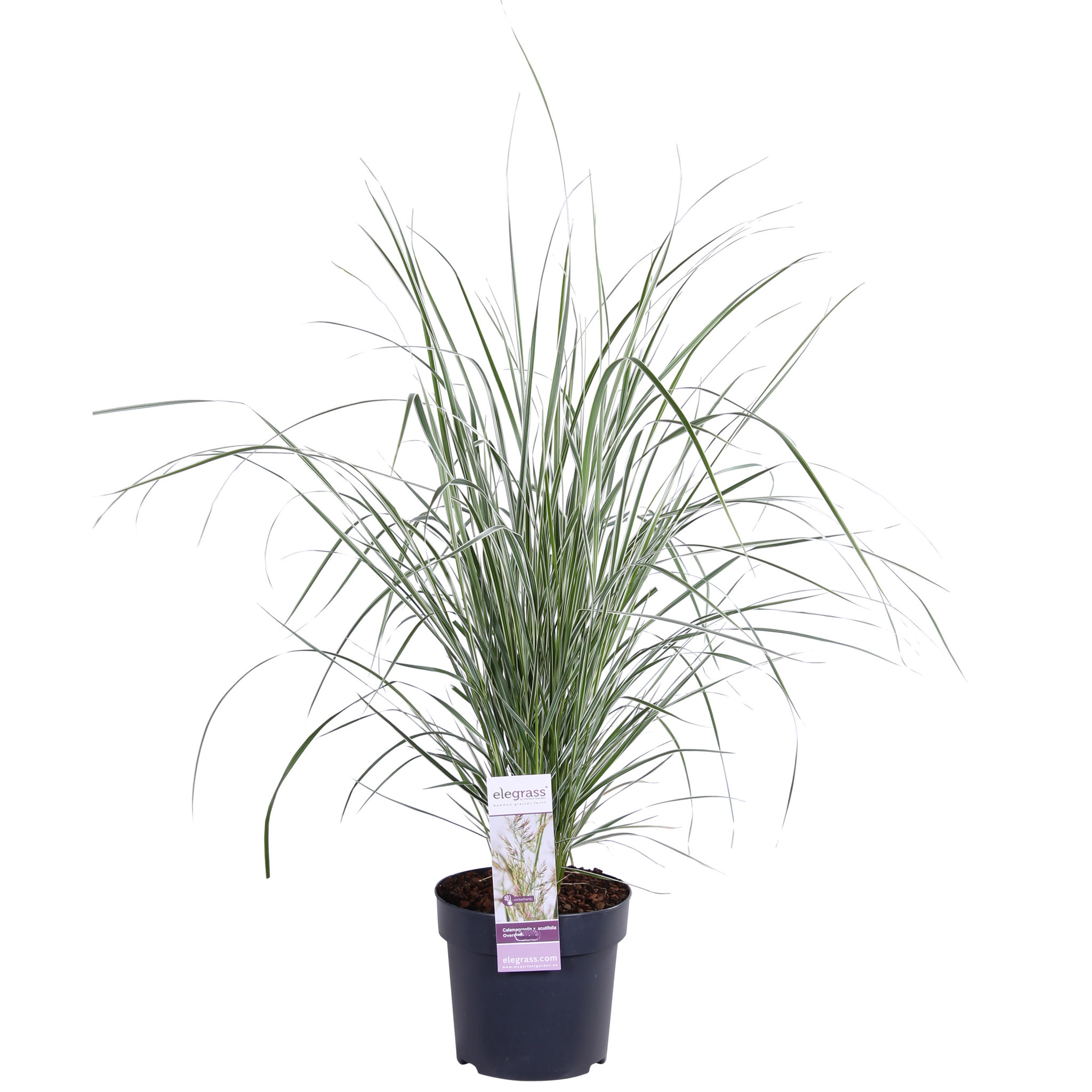 Le 'Calamagrostis acutiflora 'Overdam'', également appelé calamagrostis panaché en néerlandais, est une graminée ornementale populaire, droite et érigée, avec des feuilles étroites, vertes et robustes qui retombent légèrement. Il est reconnaissable à ses bords de feuilles blancs décoratifs. De fin juin à août, ce calamagrostis fleurit avec des panicules pourpre-brun qui deviennent dorées en automne. Cette graminée ornementale aime un emplacement en plein soleil et le sol ne saurait être trop humide pour elle. Un arrosage régulier pendant un été sec sera donc récompensé. La plante est bien rustique. Le calamagrostis demande peu d'entretien et convient pour être combiné avec de nombreuses espèces de graminées ornementales différentes dans le jardin. Grâce à ses magnifiques feuilles et à ses élégantes panicules, cette graminée ornementale est très décorative jusque tard en hiver.