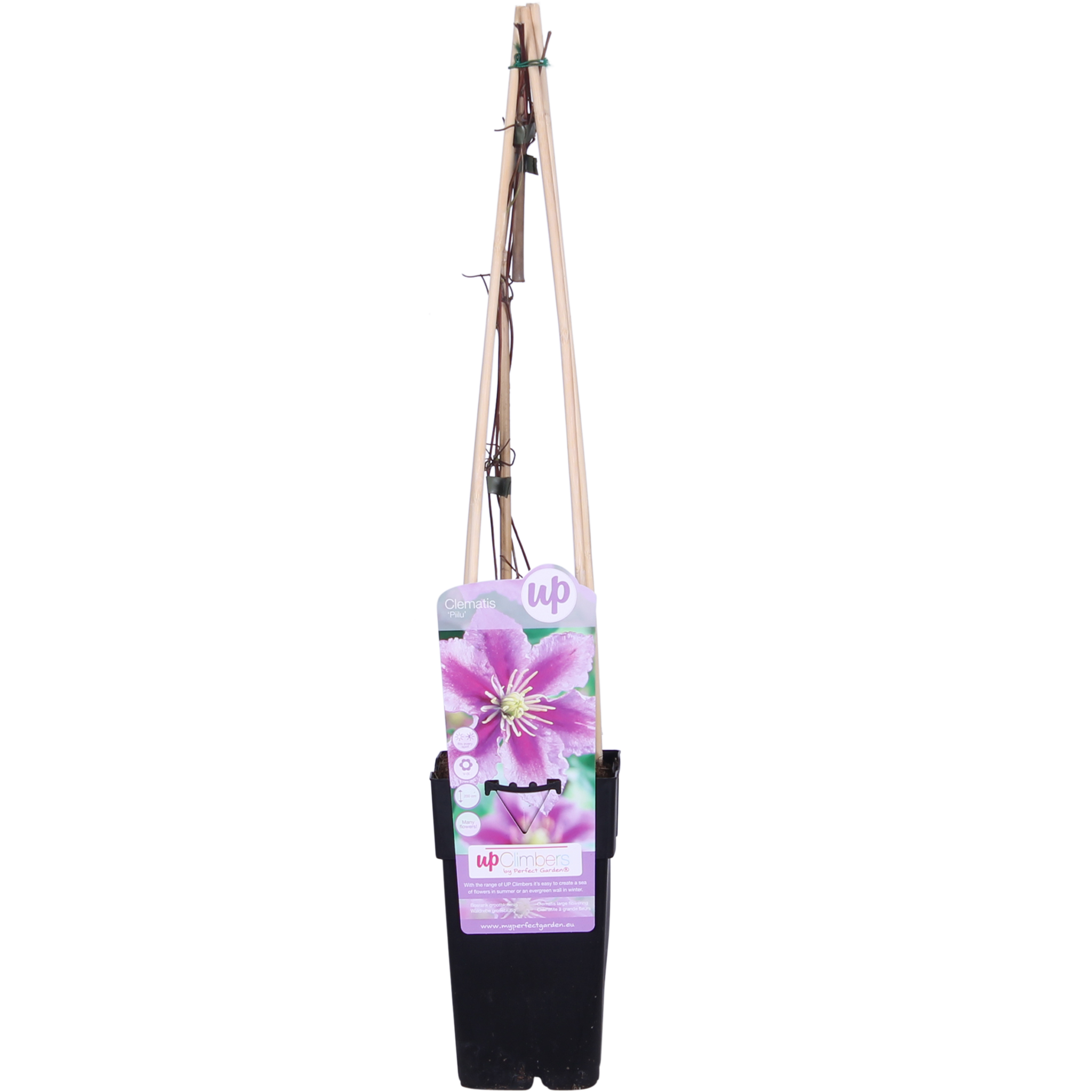 La 'Clematis Piilu' fait partie des clématites à grandes fleurs et fleurit avec de grandes fleurs roses rayées. La clématite peut fleurir deux fois par saison. En mai-juin sur le vieux bois et de juillet à août sur les jeunes pousses. Après la première floraison, il est préférable de la tailler pour qu'elle fleurisse une deuxième fois. Sa croissance nette et compacte rend cette plante grimpante adaptée aux grands comme aux petits jardins. Les clématites étaient probablement déjà appréciées dans l'Antiquité. Les Grecs appelaient en effet toutes sortes de plantes grimpantes clematis, ce qui signifie 'grimpant' et fait référence à leur capacité à grimper. C'est donc une plante grimpante qui, si vous voulez qu'elle grimpe plus joliment, a besoin d'un peu d'aide. Il est préférable de guider la plante le long d'un treillis, d'un fil ou d'un tuteur. La clématite se porte très bien aussi bien à mi-ombre qu'au soleil. Cela rend la clématite adaptée à la plupart des endroits de votre jardin. Avec plus de soleil, la clématite fleurira plus abondamment. Les racines de la clématite doivent être à l'ombre et au frais. Assurez-vous que quelque chose pousse toujours au pied de la plante ou plantez la clématite plus profondément dans le sol, environ 10 cm plus profondément que la hauteur de la motte. Elle sera ainsi protégée contre la redoutable maladie du flétrissement qui peut affecter les tiges aériennes, tandis que la plante reste saine sous terre.