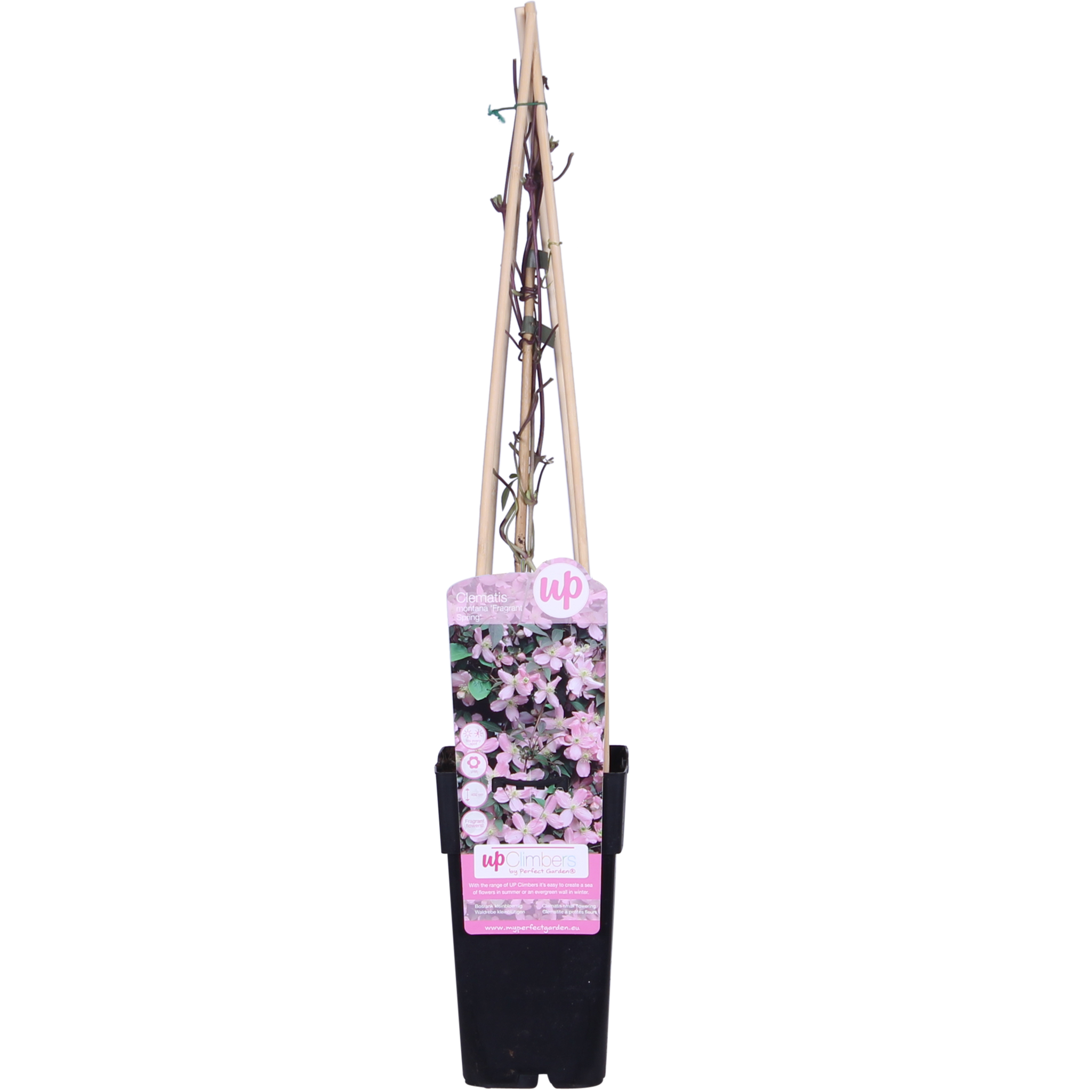 Clématite à petites fleurs ; La Clematis Montana est l'une des espèces de clématites à croissance la plus rapide. Cela rend cette clématite plus adaptée, par exemple, à une pergola, un abri de voiture ou à la végétalisation rapide de grandes surfaces. Les espèces Montana peuvent pousser de 3 à 4 mètres par an et fleurissent très abondamment tôt au printemps (avril/mai). Les espèces Montana se plaisent bien dans les jardins plus naturels et sont généralement très robustes. Il est préférable de bien tailler cette espèce juste après la floraison. Pour que votre clématite grimpe mieux et plus joliment, elle a besoin d'un peu d'aide. Il est donc préférable de guider la plante le long d'un treillis, d'un fil ou d'un tuteur.