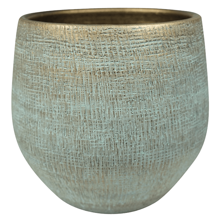 Ryan est fabriqué à la main de manière traditionnelle, artisanalement, à partir de céramique portugaise. Ryan a une finition dorée élégante. Classique et moderne à la fois. Ryan donne de l'espace à la verdure. Un pot incroyablement beau qui s'intègre dans un intérieur vert élégant.