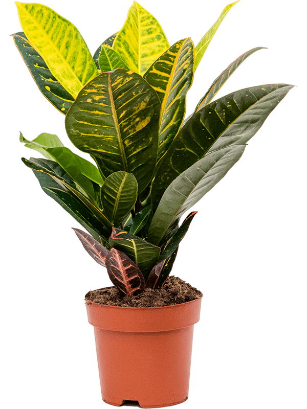 Le Croton Codiaeum ou Plante merveilleuse doit son nom néerlandais à ses grandes feuilles panachées, qui peuvent être blanches, jaunes, rouges, oranges et même violettes. Le Croton appartient à la famille des Crotoneae (Euphorbiaceae), ou en français : famille des Euphorbiacées. Ces plantes d'intérieur sont originaires d'Asie du Sud-Est.