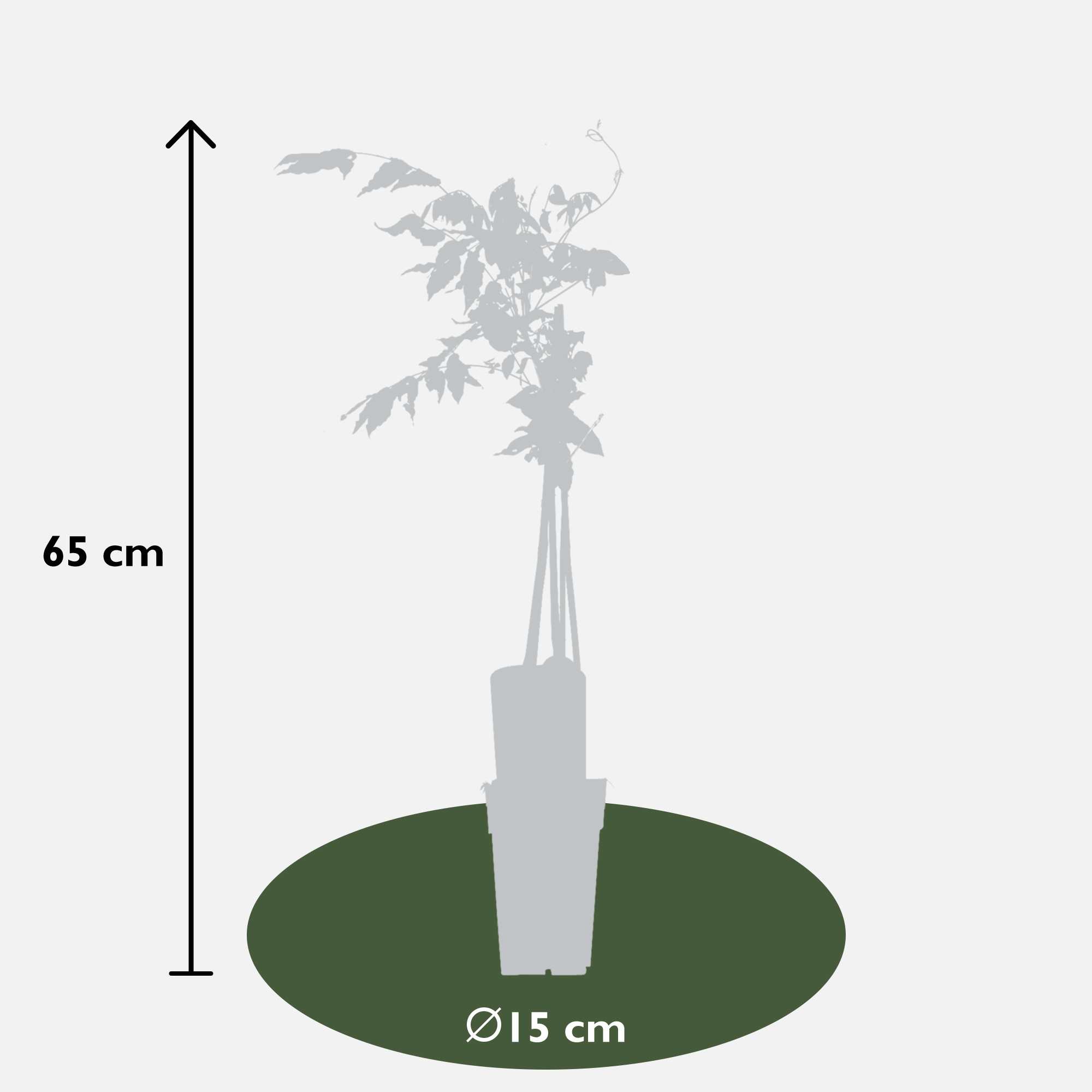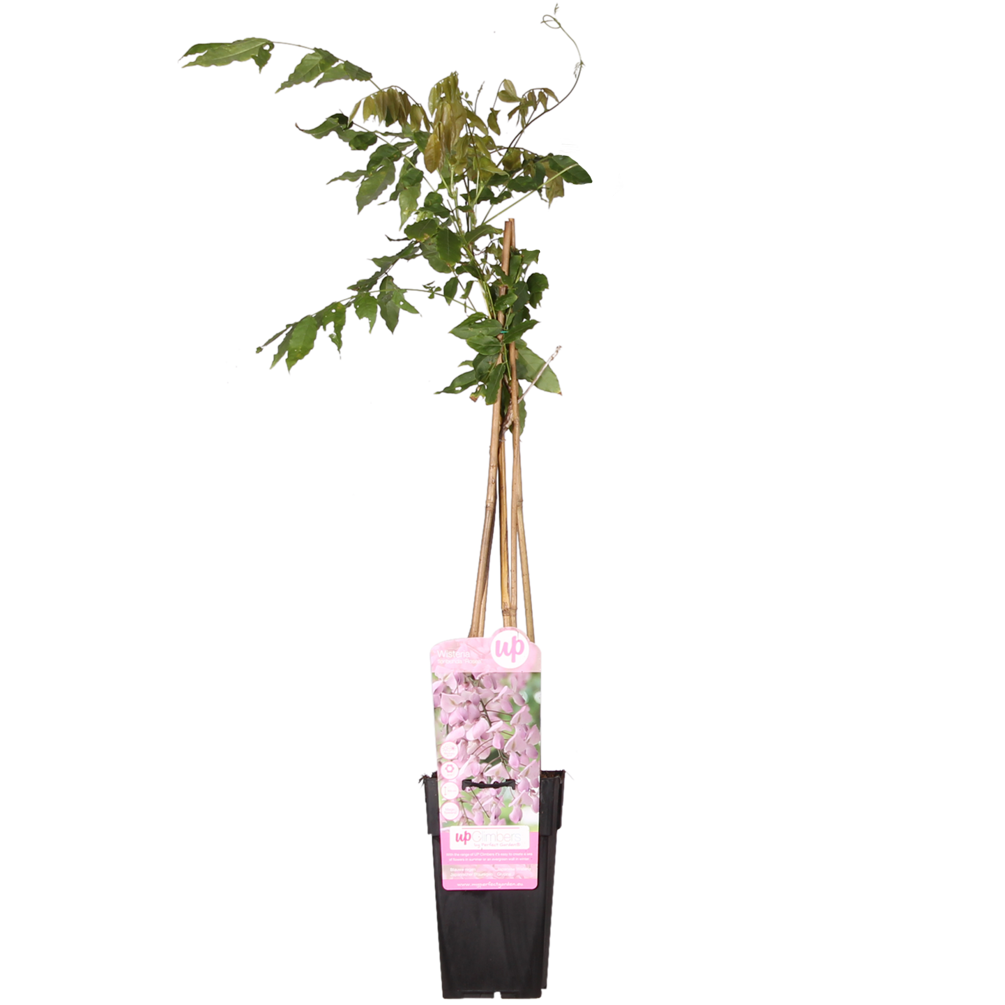 La 'Wisteria floribunda Rosea', également connue sous le nom de glycine rose, est une variante à fleurs roses de la glycine bleue. Cette espèce pousse et fleurit de la même manière que la glycine bleue, mais elle est juste un peu plus exclusive ! C'est une plante grimpante avec de belles grappes de fleurs très longues et pendantes qui apparaissent massivement en mai-juin. Une deuxième floraison peut également avoir lieu en septembre. C'est une plante grimpante à croissance rapide qui peut atteindre une hauteur maximale de 10 mètres. Pour maintenir la glycine dans sa plus belle forme, il est préférable de la guider le long d'une pergola, d'une clôture ou d'un treillis. Assurez-vous d'avoir un support solide auquel les branches seront attachées et où elle pourra grimper vers le soleil. De plus, il est important de tailler régulièrement la plante pendant sa croissance ou au début du printemps. Il est préférable de tailler deux fois par an. Au début du printemps, lorsque la plante est sans feuilles, coupez toutes les branches superflues jusqu'à environ trois yeux. Les fleurs apparaîtront plus tard à partir des yeux sur les branches latérales. En été, lorsque la plante est en pleine croissance, il est préférable de guider les longues pousses dans la direction souhaitée. Si vous n'en avez pas besoin, il est préférable de les enlever. Si vous maintenez la glycine compacte et lui donnez un emplacement ensoleillé, elle fleurira encore plus abondamment avec des grappes de fleurs délicieusement parfumées au printemps. Avec de bons soins, la glycine rose peut même vivre des centaines d'années. Les troncs plus âgés prennent une forme décorative et torsadée. Soyez patient avec cette magnifique plante grimpante, il peut falloir quelques années avant que la glycine rose ne fleurisse pleinement.