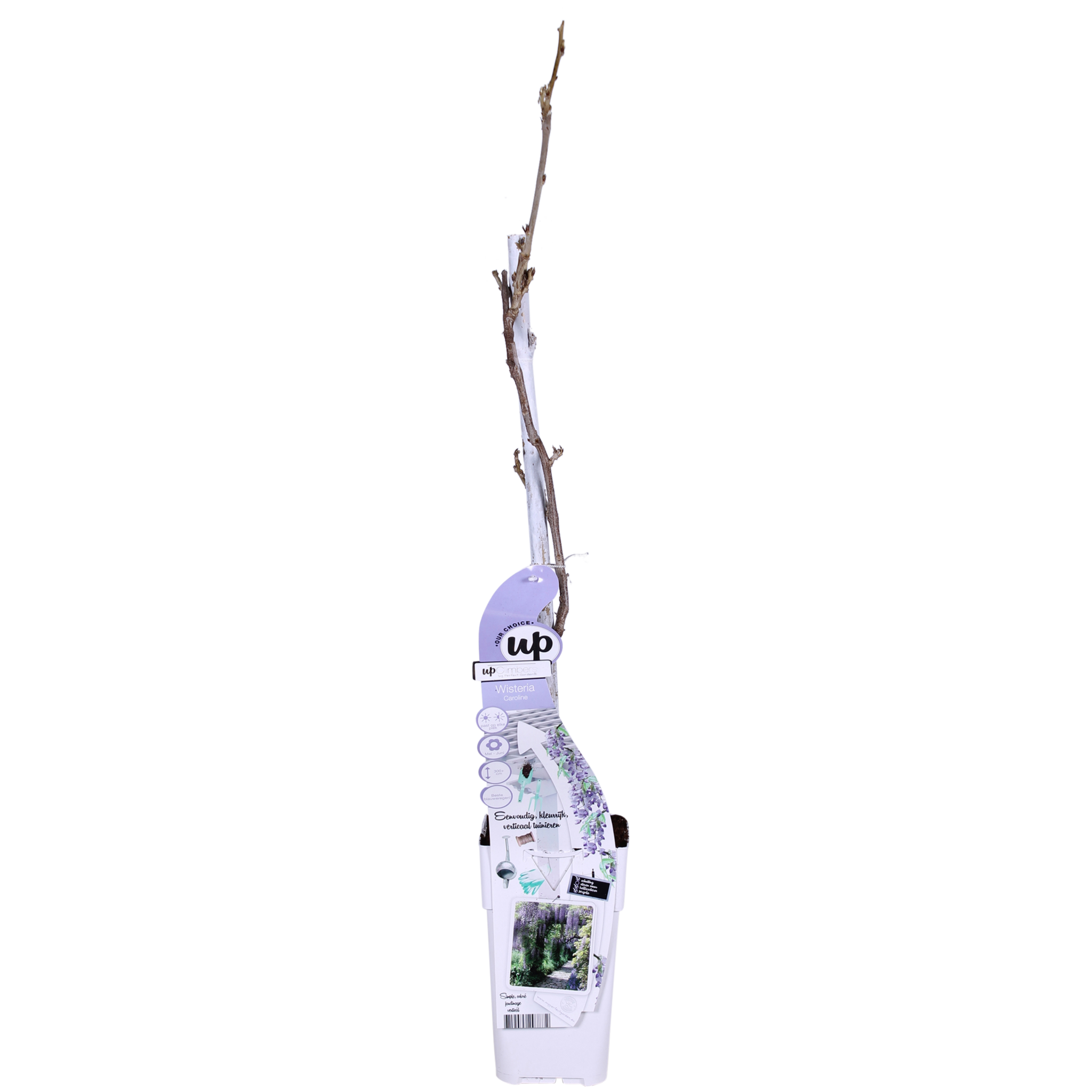 La 'Wisteria sinensis Caroline', également connue sous le nom de glycine, est une plante grimpante avec de magnifiques grappes de fleurs très longues, de couleur bleu-violet foncé, qui apparaissent massivement en mai-juin. Une deuxième floraison peut également avoir lieu en septembre. C'est une plante grimpante à croissance rapide qui peut atteindre une hauteur maximale de 10 mètres. Pour maintenir la glycine dans sa plus belle forme, il est préférable de la guider le long d'une pergola, d'une clôture ou d'un treillis. Assurez-vous d'avoir un support solide auquel les branches seront attachées et où elle pourra grimper vers le soleil. De plus, il est important de tailler régulièrement la plante pendant sa croissance ou au début du printemps. Il est préférable de tailler deux fois par an. Au début du printemps, lorsque la plante est sans feuilles, coupez toutes les branches superflues jusqu'à environ trois yeux. Les fleurs apparaîtront plus tard à partir des yeux sur les branches latérales. En été, lorsque la plante est en pleine croissance, il est préférable de guider les longues pousses dans la direction souhaitée. Si vous n'en avez pas besoin, il est préférable de les enlever. Si vous maintenez la glycine compacte et lui donnez un emplacement ensoleillé, elle fleurira encore plus abondamment avec des grappes de fleurs délicieusement parfumées au printemps. Avec de bons soins, la glycine peut même vivre des centaines d'années. Les troncs plus âgés acquièrent une forme décorative et torsadée. Soyez patient avec cette magnifique plante grimpante, il peut falloir quelques années avant que la glycine ne fleurisse pleinement.