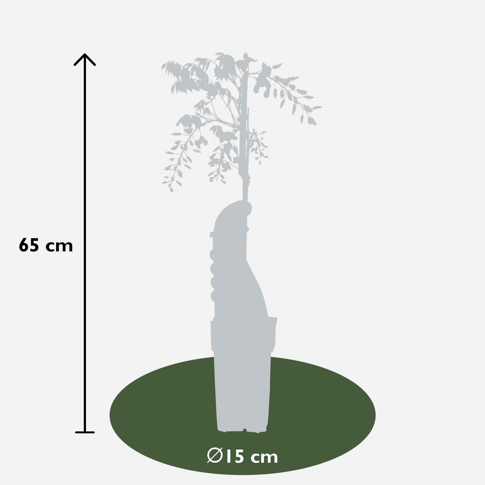 La 'Wisteria sinensis Caroline', également connue sous le nom de glycine, est une plante grimpante avec de magnifiques grappes de fleurs très longues, de couleur bleu-violet foncé, qui apparaissent massivement en mai-juin. Une deuxième floraison peut également avoir lieu en septembre. C'est une plante grimpante à croissance rapide qui peut atteindre une hauteur maximale de 10 mètres. Pour maintenir la glycine dans sa plus belle forme, il est préférable de la guider le long d'une pergola, d'une clôture ou d'un treillis. Assurez-vous d'avoir un support solide auquel les branches seront attachées et où elle pourra grimper vers le soleil. De plus, il est important de tailler régulièrement la plante pendant sa croissance ou au début du printemps. Il est préférable de tailler deux fois par an.