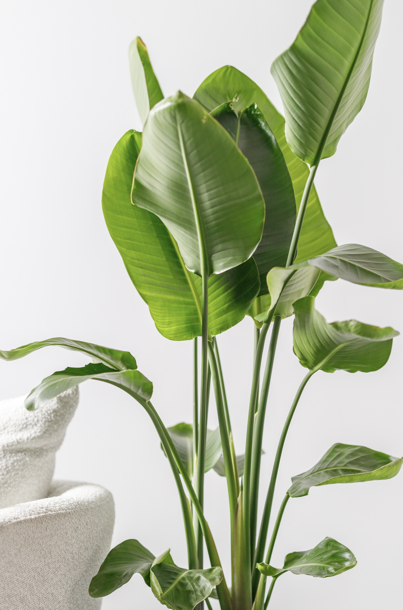 Le Strelitzia est une plante extrêmement populaire en raison de ses magnifiques éventails, ses feuilles imposantes qui poussent vers le haut. Cette plante est donc souvent un élément accrocheur dans la pièce et apporte une ambiance jungle à l'intérieur.