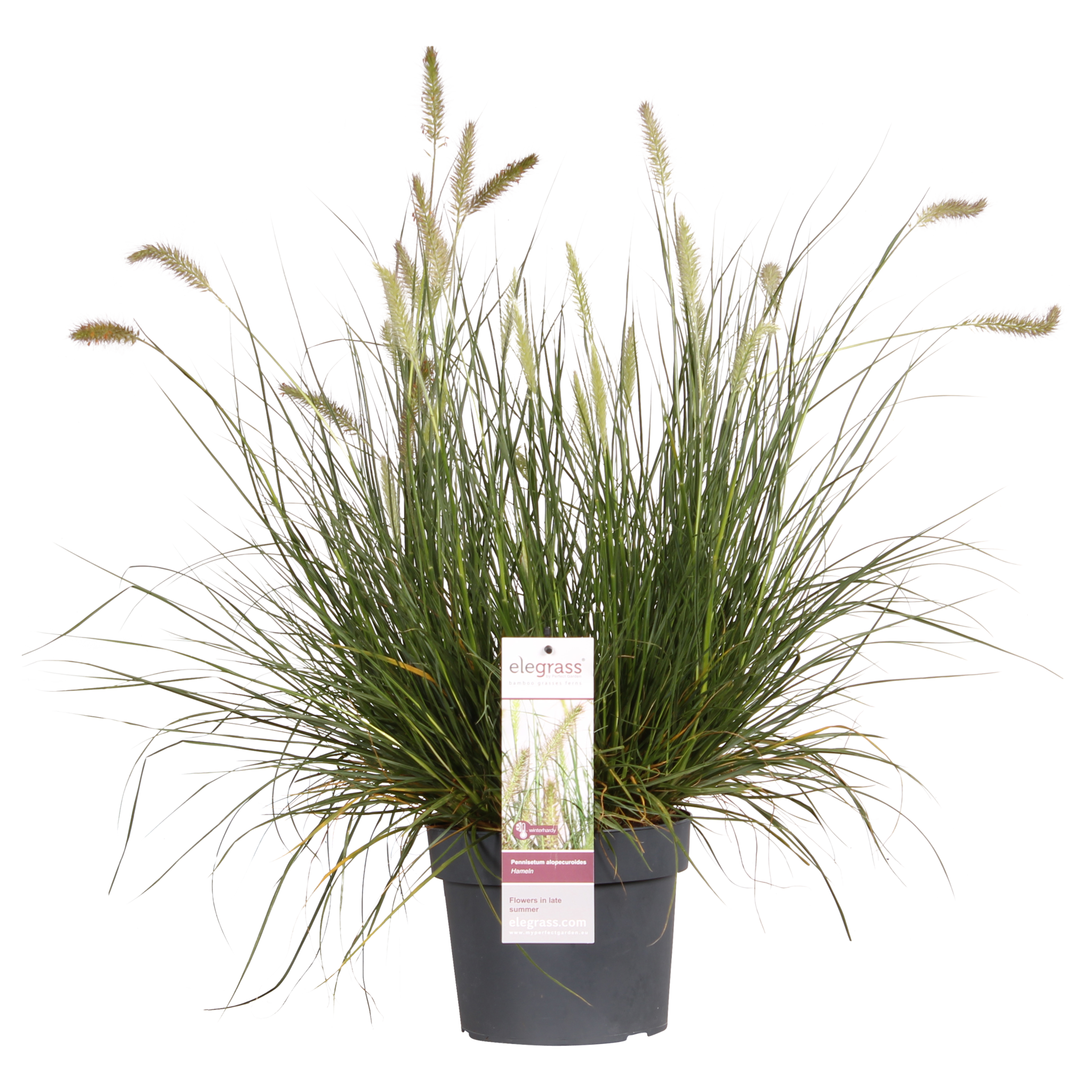 Pennisetum alopecuroides "Hameln", appelé en néerlandais herbe aux écouvillons, est une graminée caduque particulièrement populaire avec un port rond, compact et en touffe. Les feuilles sont étroitement linéaires, vert moyen à vert foncé, arquées et retombantes, et prennent une couleur jaune doré à l'automne. Pennisetum alopecuroides "Hameln" fleurit de juillet à septembre avec des épis d'abord verdâtres, blanc crème, qui deviennent gris-brun plus tard à l'automne. Cette herbe aux écouvillons aime un emplacement en plein soleil ou à mi-ombre et un sol bien drainé, moyennement fertile et pas trop lourd. Ce pennisetum est assez à bien rustique et tolérant à la sécheresse, supporte bien le vent marin et la pollution atmosphérique. C'est une belle graminée ornementale pour les massifs mixtes, les jardins de gravier, les jardins de prairie ou également utilisable comme plante en pot et adaptée comme fleur coupée.