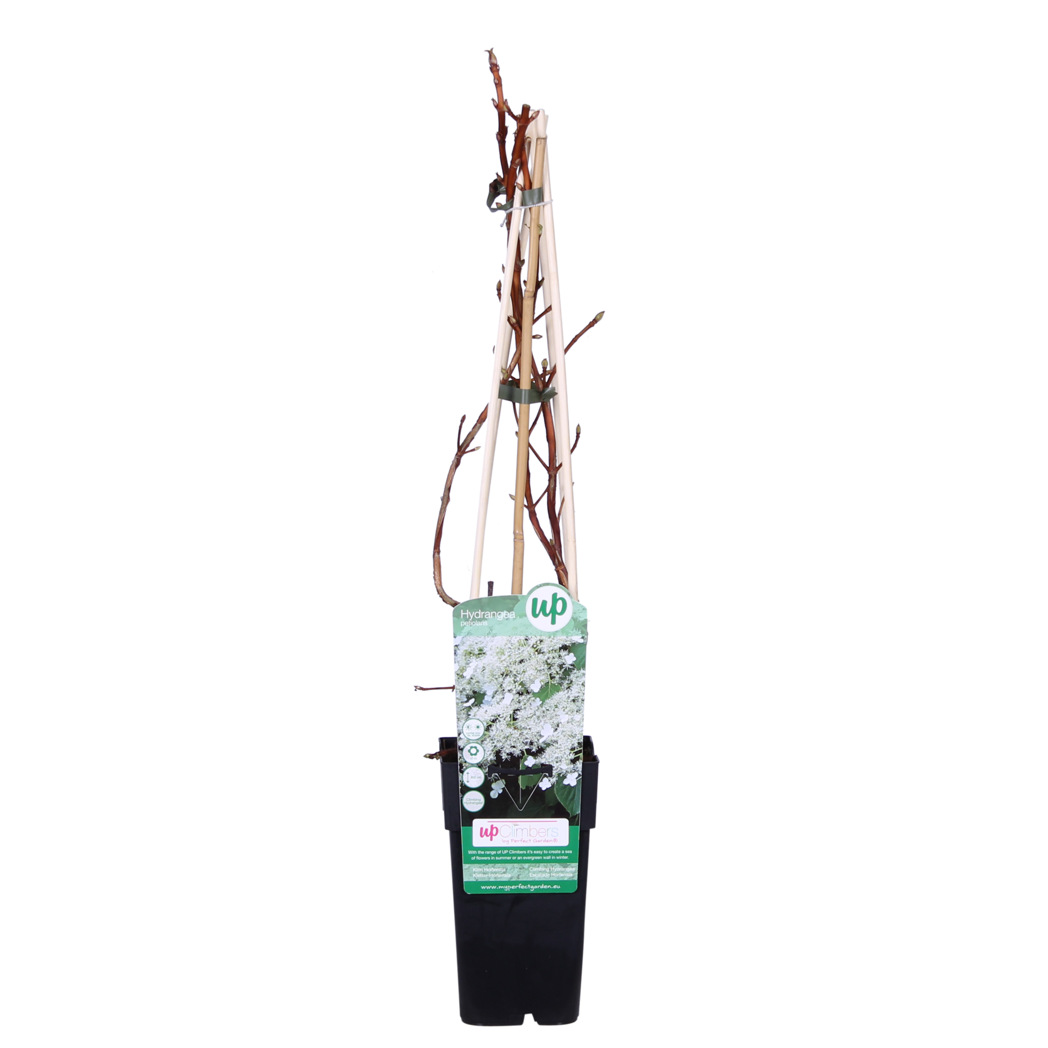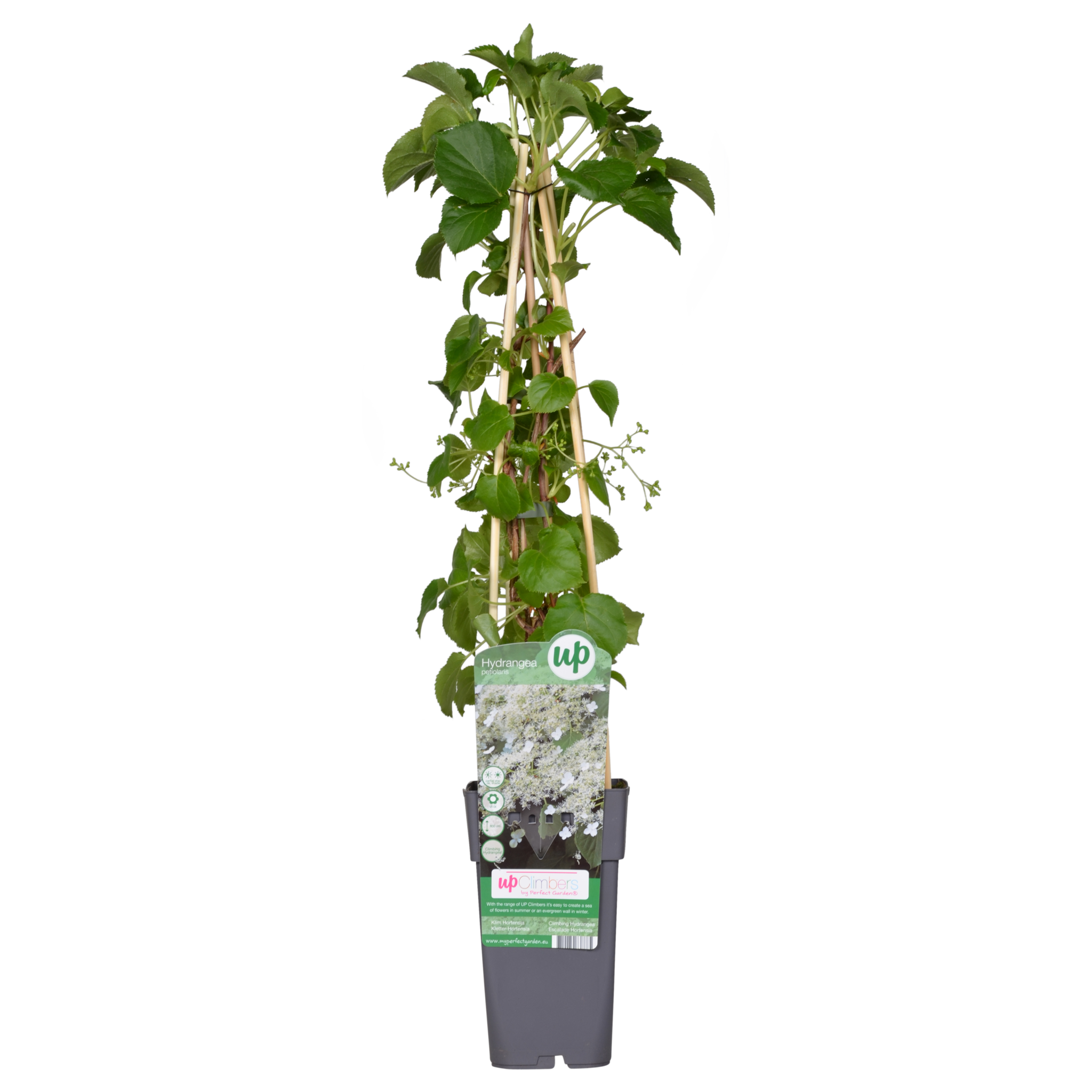 Hortensia grimpant ; Hydrangea Petiolaris, également appelé hortensia grimpant. C'est l'une des plantes grimpantes les plus populaires depuis des années. C'est logique, car nous pensons qu'elle est très facile d'entretien, qu'elle pousse bien à l'ombre et qu'elle est une parente éloignée de l'hortensia commun. C'est probablement à cela qu'elle doit son feuillage vert frais et ses magnifiques inflorescences blanches. Ce qui rend l'Hydrangea encore plus facile d'entretien, c'est qu'elle grimpe grâce à des racines auto-adhésives sur ses branches. Elle a donc peu besoin d'aide. Vous pouvez maintenir cette plante en très belle forme en la taillant bien. L'Hydrangea atteint une hauteur maximale d'environ 5 mètres.