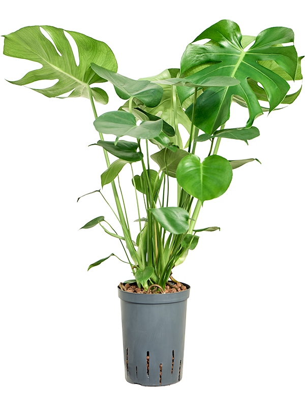 Onze basis opmaak bestaat uit semi hydro, dat betekent dat wij vanaf een potmaat van 20 centimeter en groter, de planten rondom de kwekersaarde afstrooien met hydrokorrels. Hierbij heeft u als extra keuze om een watermeter toe te voegen en of u de bovenkant van de pot wilt laten afstrooien met houtsnippers.