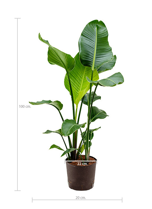 La Strelitzia est une plante aux magnifiques grandes feuilles vertes originaire d'Afrique du Sud. Ses grandes feuilles plumeuses créeront votre propre jungle chez vous. Dans la nature, la Strelitzia peut atteindre 10 mètres de haut ! Dans votre salon, elles n'atteindront pas cette hauteur, mais elles sont un excellent moyen de combler un coin vide.
