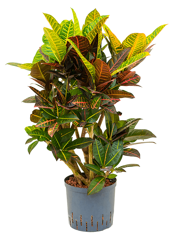 Le Croton Codiaeum, ou "Wonderstruik" (arbuste merveilleux), doit son nom néerlandais à ses grandes feuilles panachées, qui peuvent être blanches, jaunes, rouges, oranges et même violettes. Le Croton appartient à la famille des Crotoneae (Euphorbiaceae), ou en néerlandais : Wolfsmelkfamilie (famille des euphorbes). Ces plantes d'intérieur sont originaires d'Asie du Sud-Est.