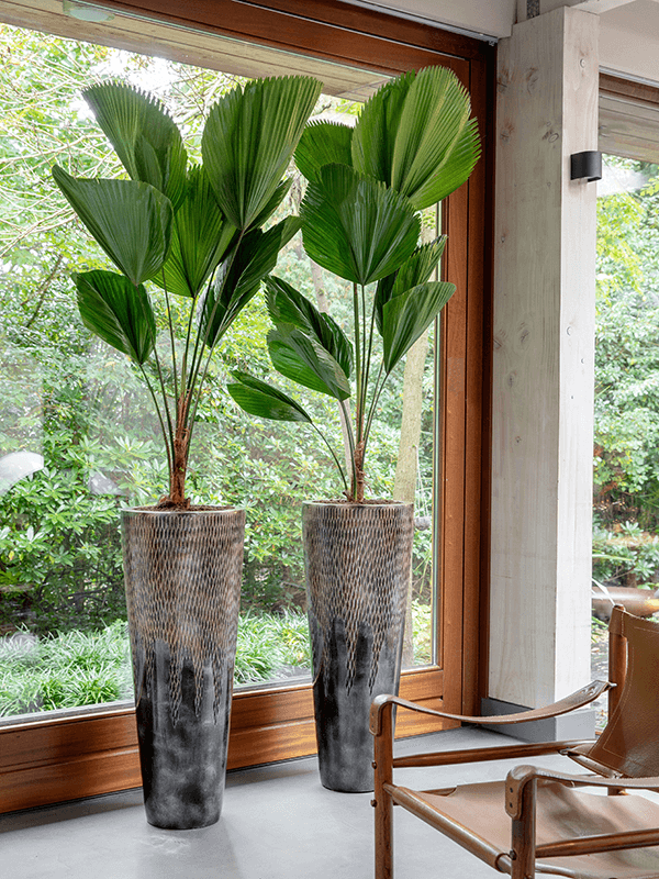 La série Jardinière de Luxe est de haute qualité et fabriquée à la main à partir de plastique renforcé de fibres. Ce matériau est très solide, mais reste léger. La collection est conçue avec une attention particulière aux détails, ce qui se reflète dans la magnifique finition. Les jardinières ont un aspect luxueux et exclusif, chacune avec un design unique. Les pots sont dotés d'un double fond, ce qui leur permet de rester légers !