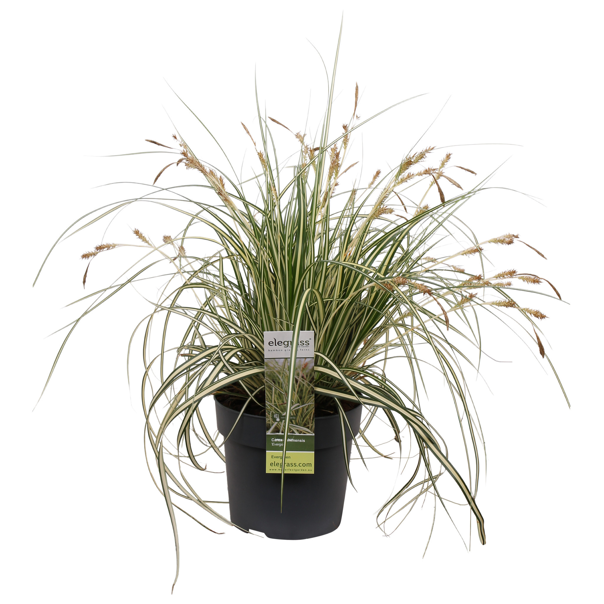 Le ‘Carex Evergold’, également appelé Laîche panachée jaune, est une graminée ornementale persistante. Cela signifie que la plante conserve également son feuillage en hiver. C'est la raison pour laquelle le Carex est l'une des graminées ornementales les plus populaires depuis des années. La plante se plaît en couvre-sol, en bordure ou en pot décoratif. Le ‘Carex Evergold’ fleurit avec de joyeuses épis floraux au printemps et atteint environ 40 cm de hauteur. Nous conseillons de tailler le Carex de temps en temps au printemps. Pour ce faire, coupez les pointes brunies au début du printemps, jusqu'à 10 cm au-dessus du sol. Ce n'est pas une obligation, mais cela évite que les brins plus anciens ne développent des taches brunes. Après la taille, cette espèce repousse fraîchement et le Carex est encore plus beau qu'avant !