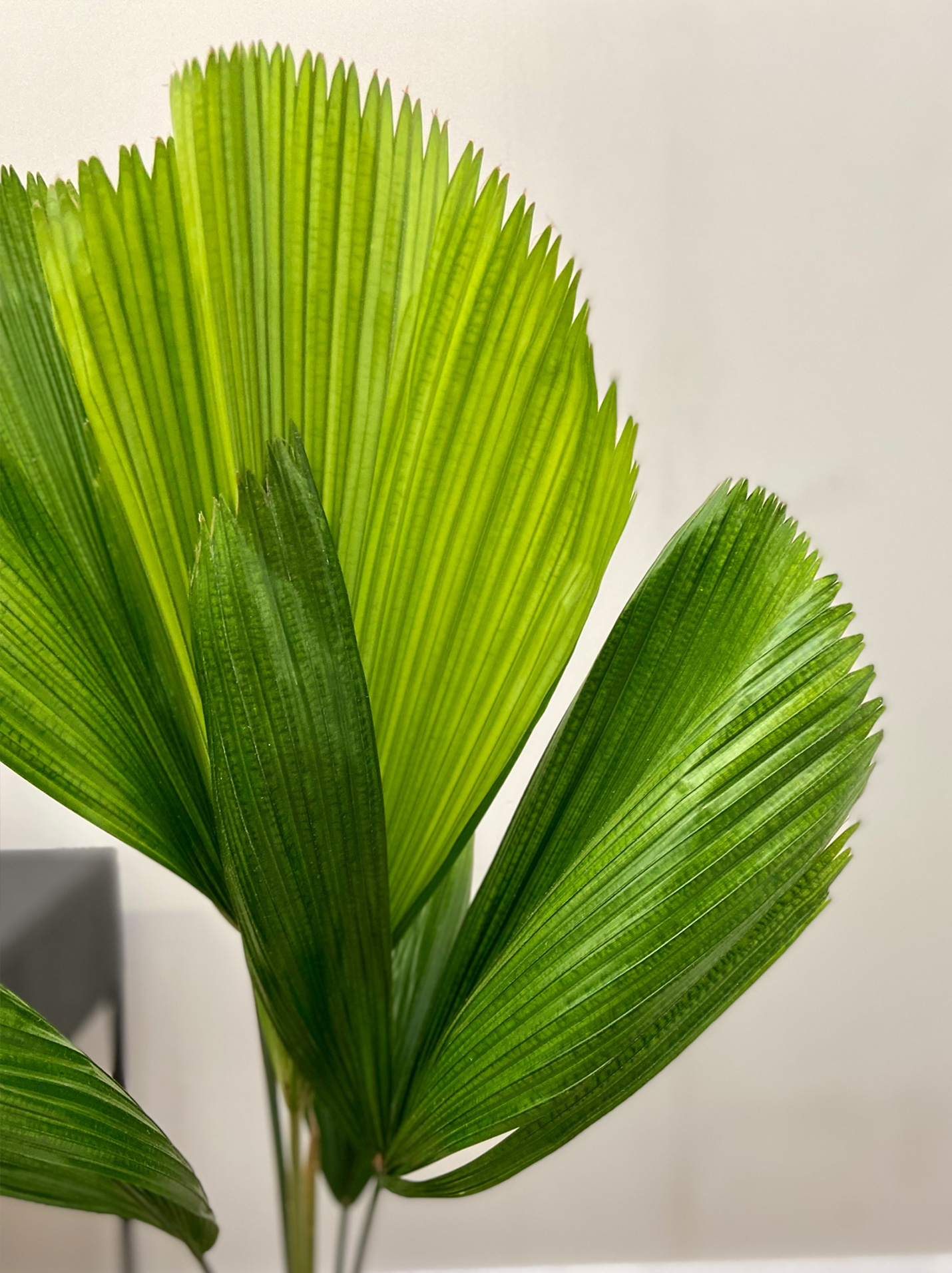 Le palmier éventail préfère un endroit lumineux à mi-ombragé. Il est originaire des tropiques, il se porte donc également très bien dans une salle de bain lumineuse ou un environnement de piscine/sauna.