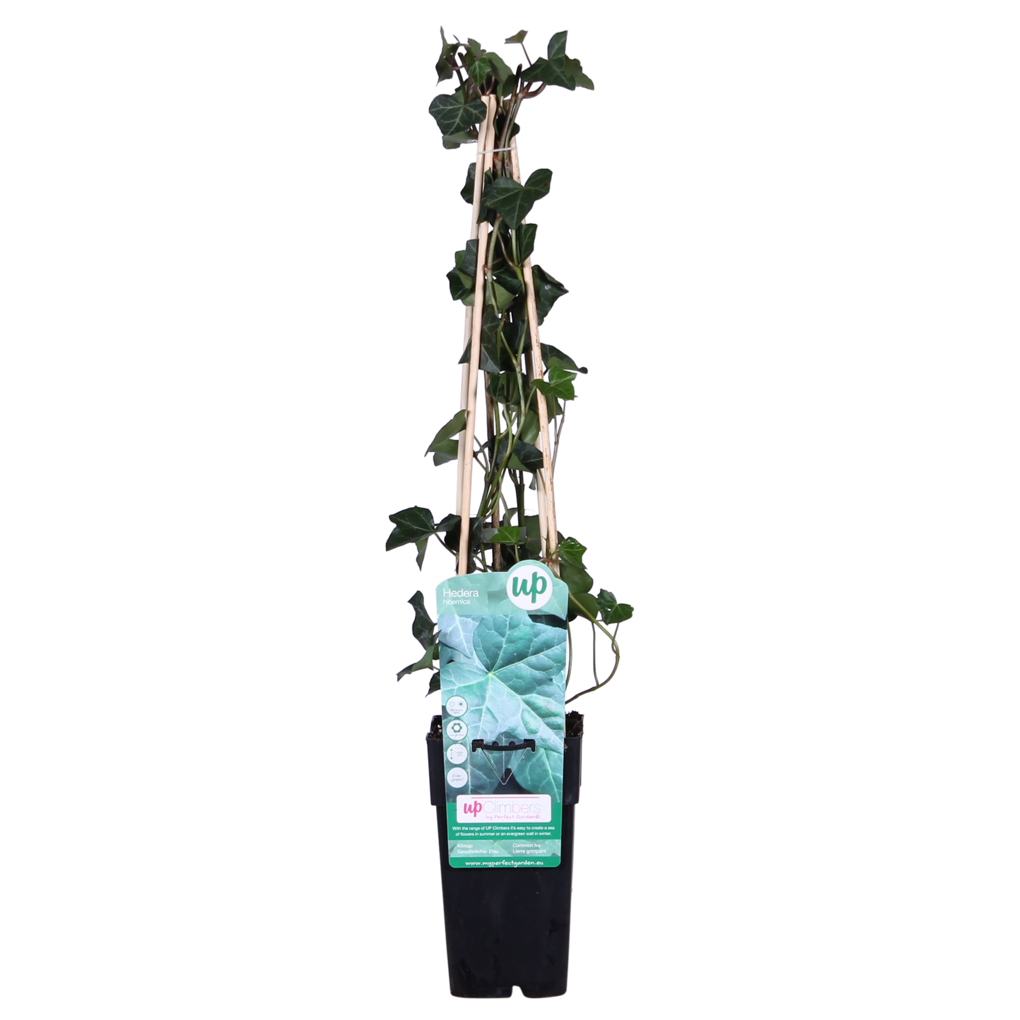 Le 'Hedera hibernica' est l'un des lierres les plus connus et les plus plantés. La raison en est que cette plante grimpante est très facile d'entretien, pousse rapidement et reste joliment verte en hiver. Il convient aussi bien au soleil qu'à l'ombre et pousse dans tout type de sol. Avec ses feuilles vertes fraîches et éparses, cette plante est idéale pour camoufler un mur, égayer une clôture ou recouvrir un grillage. S'il n'y a rien à grimper, les tiges rampent sur le sol et développent des racines avec lesquelles elles peuvent parcourir de grandes distances. Cela rend le lierre également adapté comme couvre-sol.