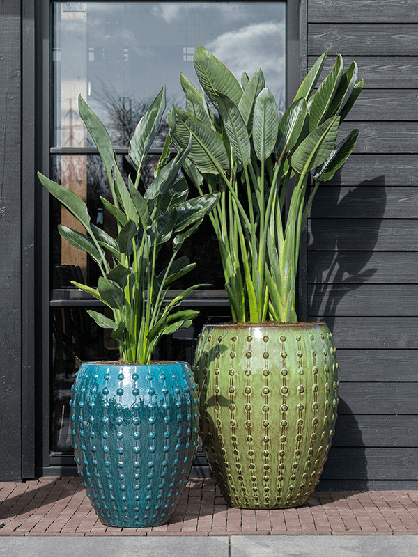 Ces jardinières en céramique sont décorées d'un motif particulier. Les picots à l'extérieur des jardinières leur confèrent un aspect élégant, aussi bien à l'intérieur qu'à l'extérieur. Ce pot est doté d'un trou de drainage pour évacuer l'excès d'eau. Si vous souhaitez utiliser le pot à l'intérieur, vous pouvez commander une housse de protection.
