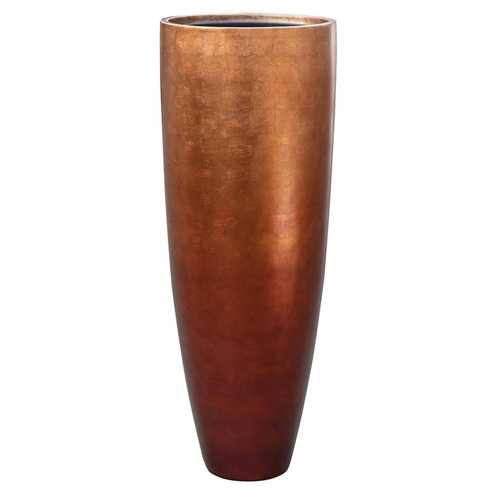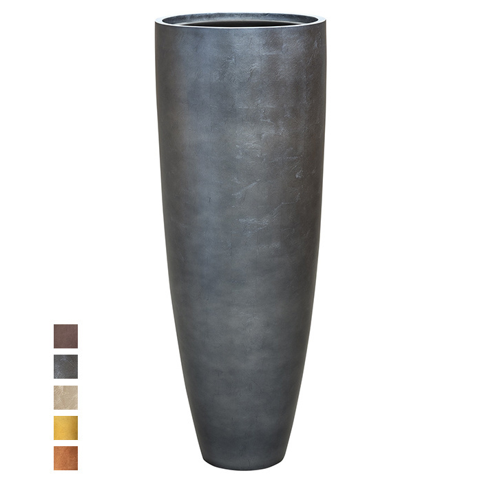 Ce pot de fleurs fait partie d'une série de produits entièrement faits à la main et soigneusement finis dans les moindres détails. La collection Messina a un aspect chic et élégant. Les pots de fleurs sont entièrement recouverts de feuille d'argent puis finis avec une couche de laque transparente colorée. Les pots de fleurs sont étanches et peuvent donc être utilisés à l'intérieur.