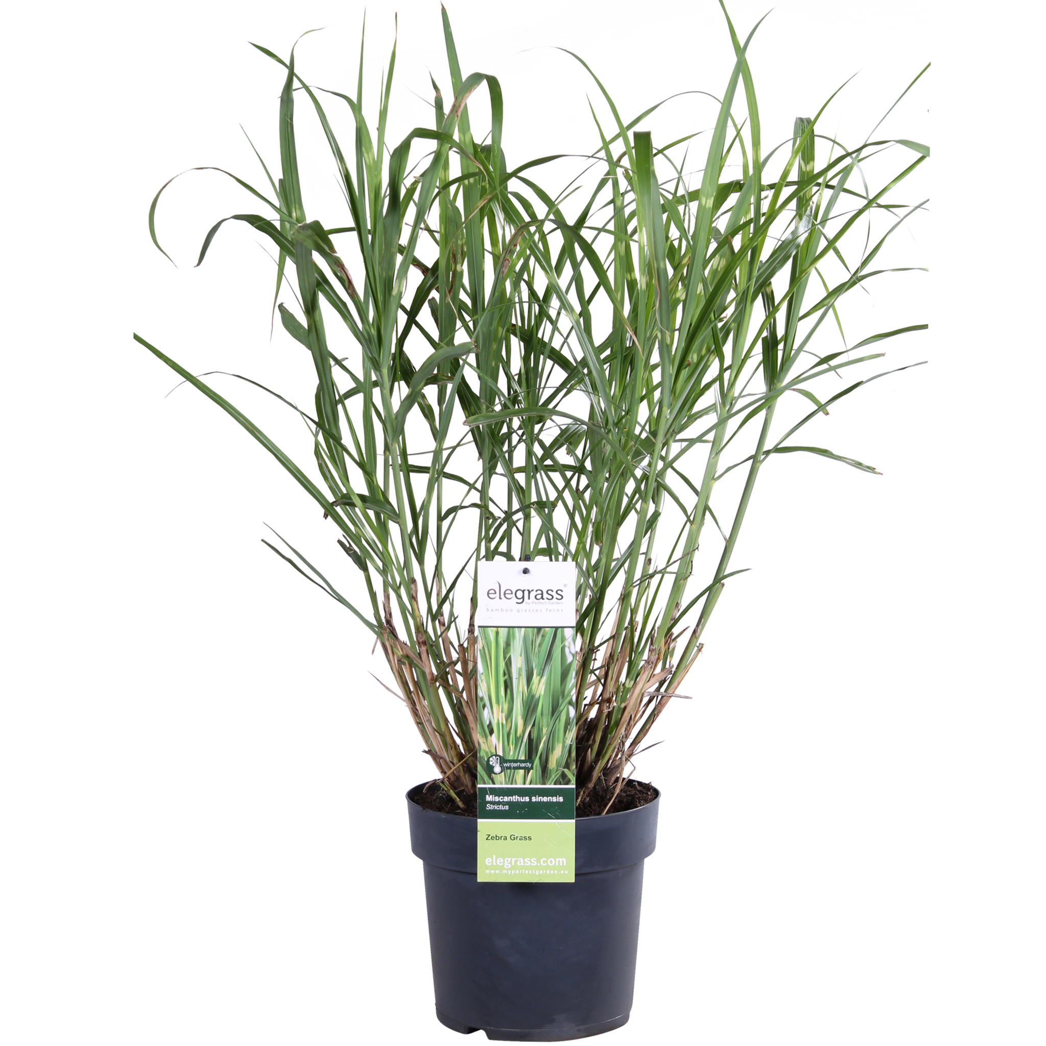 Le ‘Miscanthus Sinensis ‘Strictus’’ est une herbe ornementale gracieuse avec une croissance dressée et des feuilles remarquables, ludiques, rayées transversalement de vert et de jaune. En raison de ses rayures, son surnom est aussi herbe zèbre. Cette graminée ornementale fleurit avec des panaches de couleur bronze à la fin de l'été. C'est une plante à croissance vigoureuse, adaptée aussi bien à la pleine terre qu'à un pot décoratif.