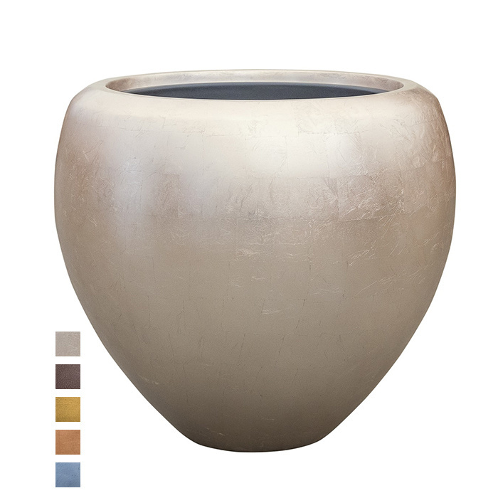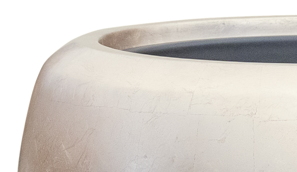 Ce pot de fleurs fait partie d'une série de produits entièrement faits à la main et soigneusement finis dans les moindres détails. La collection Metallic a un aspect chic et élégant. Les pots de fleurs sont entièrement recouverts de feuille d'argent, puis finis avec une couche de laque transparente colorée. Les pots de fleurs sont étanches et peuvent donc être utilisés à l'intérieur.