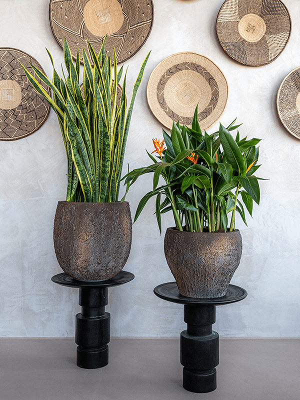 Ce pot de fleurs en ficonstone est fabriqué à la main et se compose d'un mélange de fibre de verre, de ciment, de sable et de pierre en poudre. Le ficonstone a un aspect naturel et est très durable. Le matériau est pratiquement incassable et l'intérieur du pot de fleurs n'absorbe pas l'eau. Cela rend le pot de fleurs Dax également résistant au gel et il conserve sa forme à des températures plus élevées.