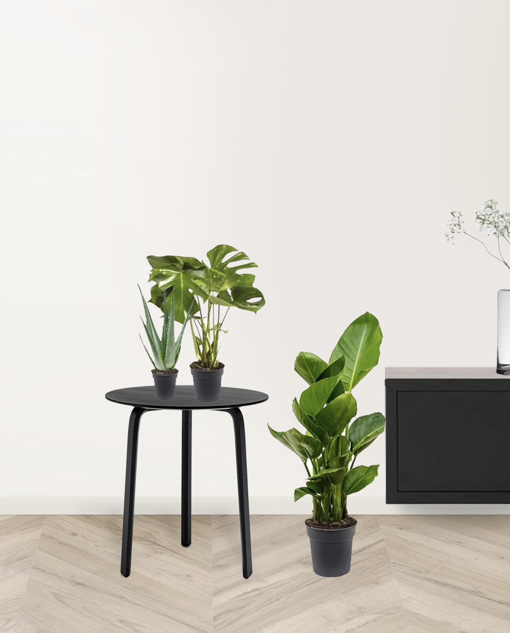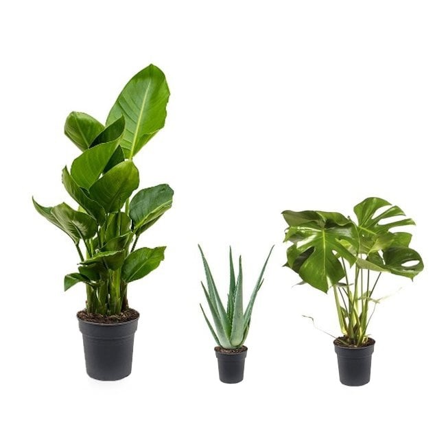Le Strelitzia est une plante extrêmement populaire grâce à ses magnifiques éventails, ses feuilles imposantes qui poussent vers le haut. Cette plante est donc souvent un point d'attraction dans la pièce et apporte une ambiance jungle à l'intérieur.
