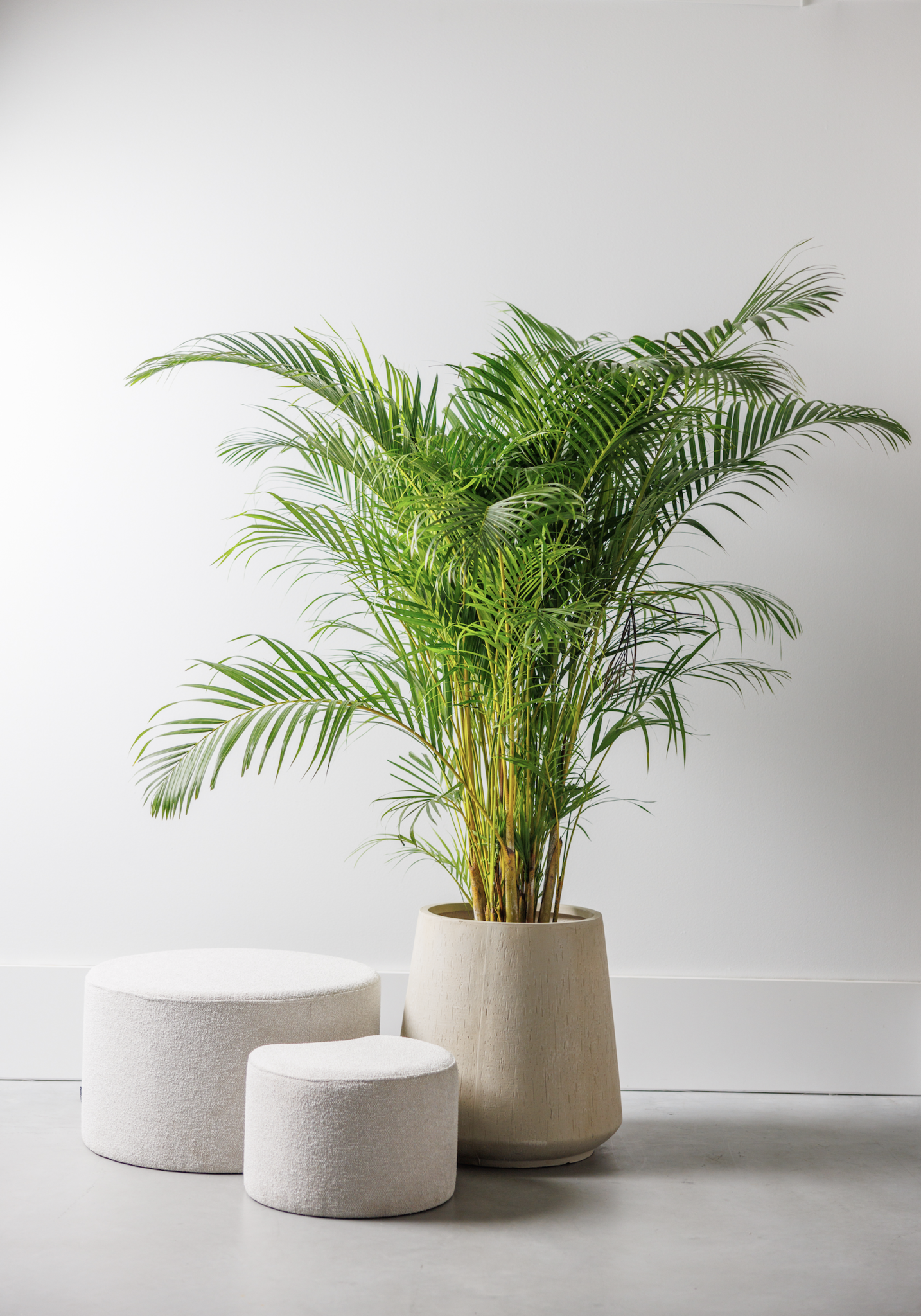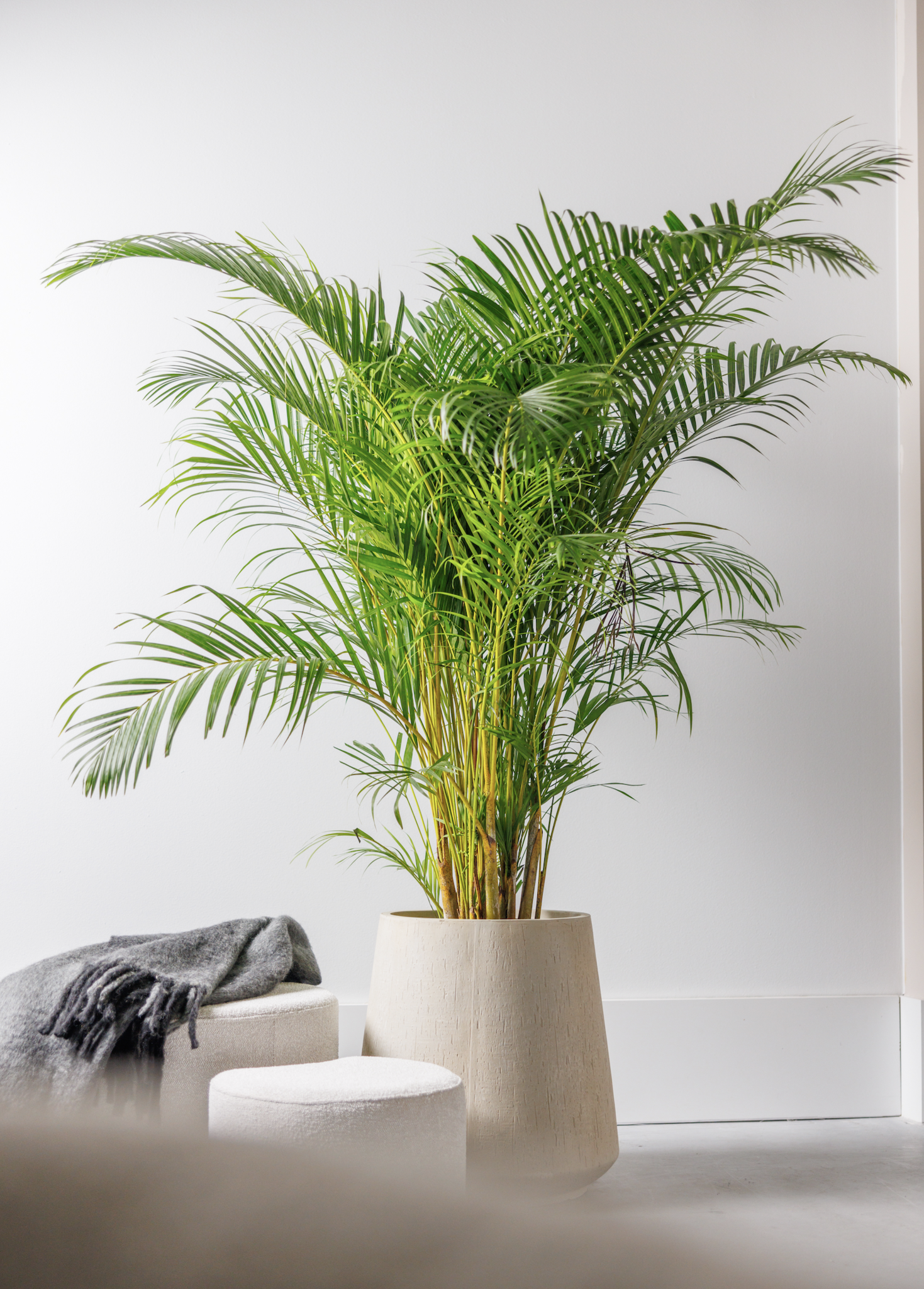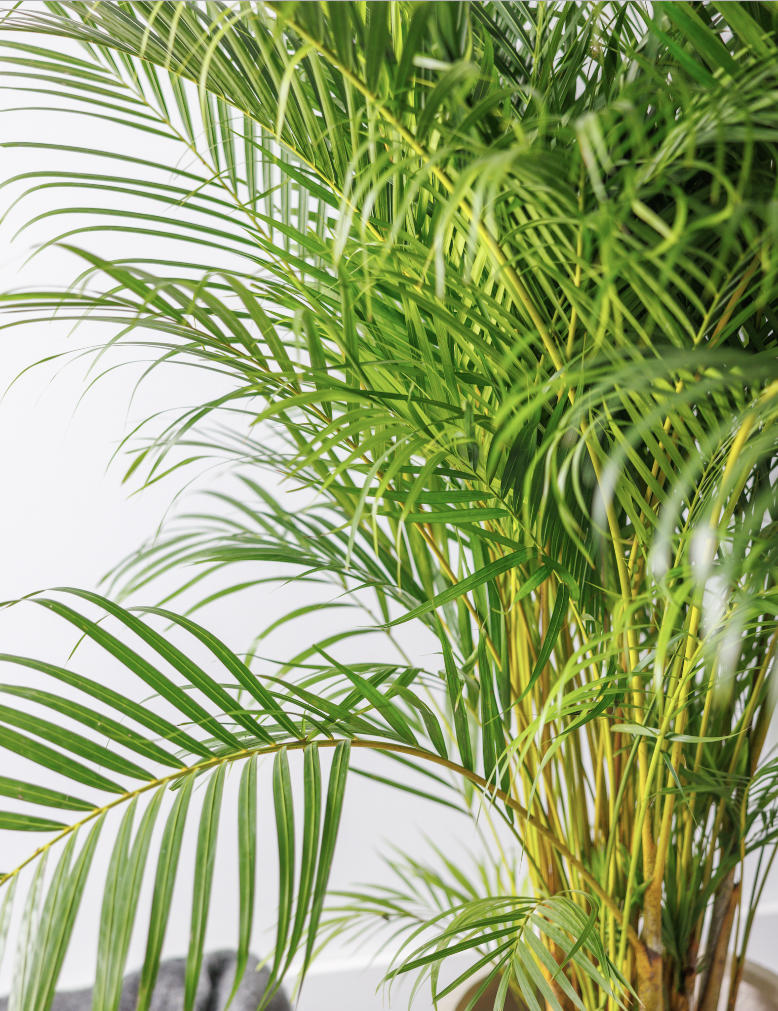 L'Areca, ou palmier doré, est un palmier exubérant qui pousse assez grand. C'est la plante parfaite pour quelqu'un qui veut une plante du sol au plafond, qui n'a pas besoin de lumière directe du soleil. De plus, l'Areca évapore de grandes quantités d'eau, ce qui rend l'air souvent trop sec de nos pièces beaucoup plus agréable à respirer.