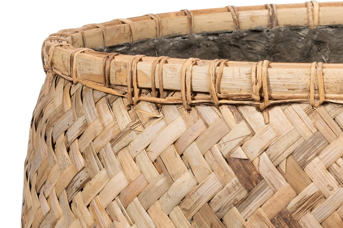 Ce panier tressé et imprégné est fabriqué selon un nouveau procédé unique. Les paniers traditionnellement tissés sont transformés en jardinières solides à l'aide de ciment à l'intérieur. Grâce à la composition naturelle du matériau, vous obtenez des paniers très robustes.