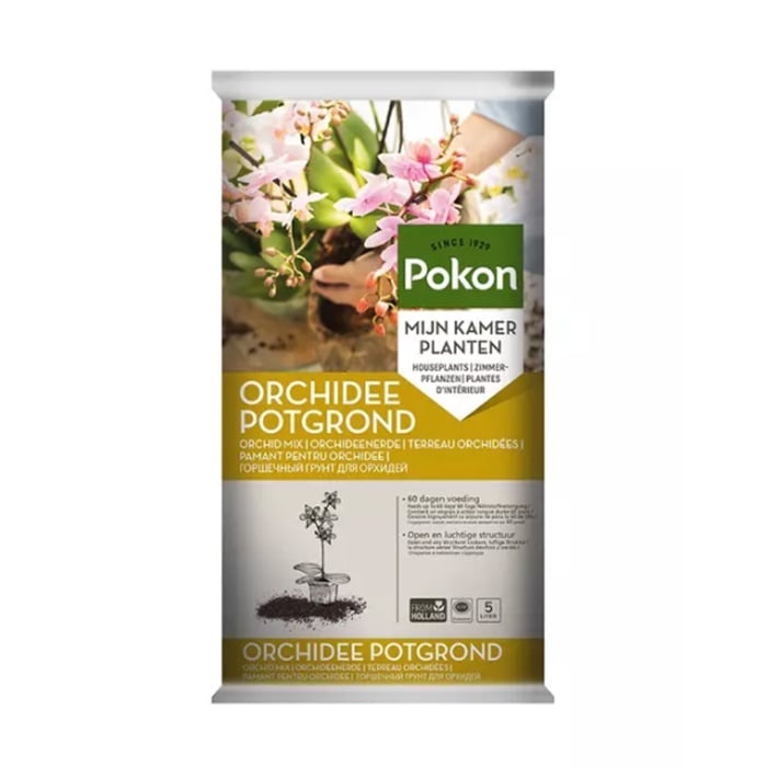 Le terreau pour orchidées est emballé dans des sacs de 5 litres.