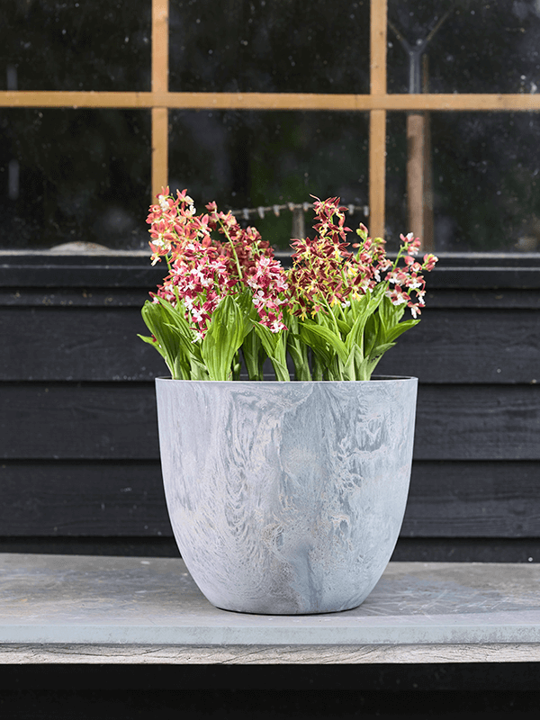 Artstone propose une série de pots unique qui donnera un coup de fouet à votre plante d'intérieur. Artstone a réussi à créer un aspect marbre unique grâce à un mélange de plastique et de pierre. La pierre donne aux pots une sensation de robustesse, et le plastique assure la légèreté du pot. Les pots sont donc faciles à déplacer et sont presque insensibles aux dommages.