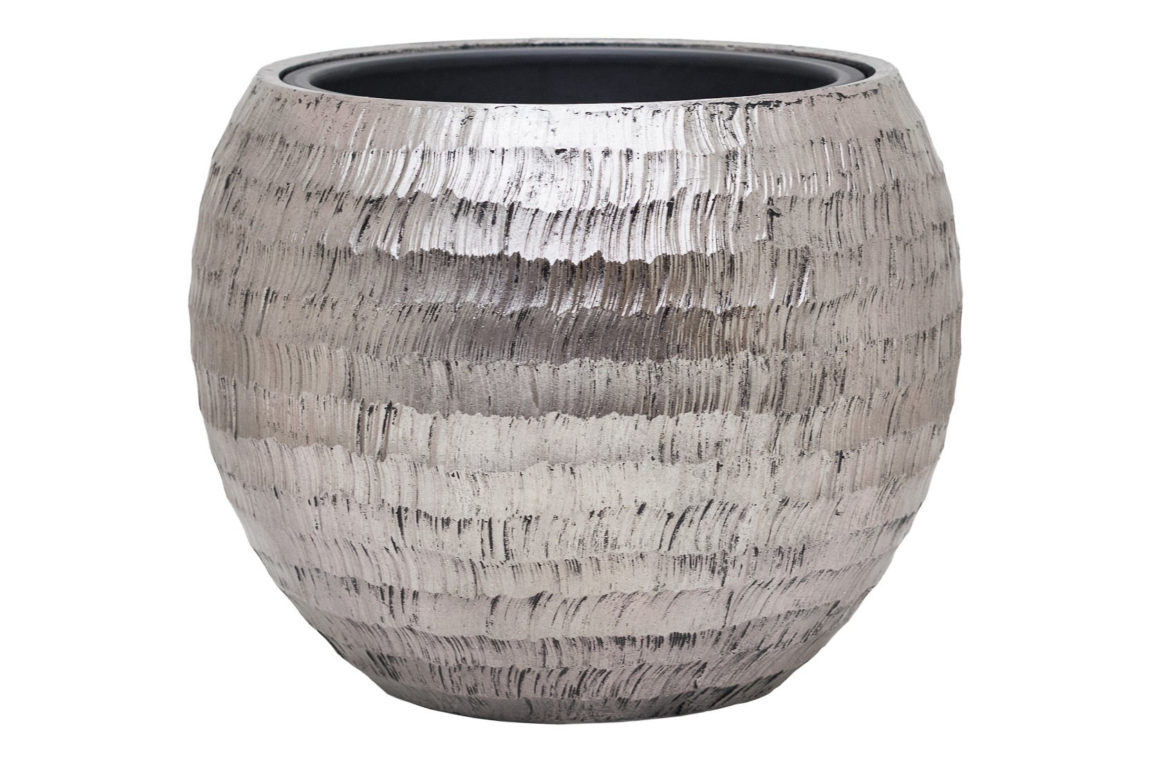 Ce pot de fleurs fait partie d'une série de produits entièrement faits à la main et soigneusement finis dans les moindres détails. La collection Metallic a un aspect chic et élégant. Les pots de fleurs sont entièrement recouverts de feuilles d'argent puis finis avec une couche de laque transparente colorée. Les pots de fleurs sont étanches et peuvent donc également être utilisés à l'intérieur.
