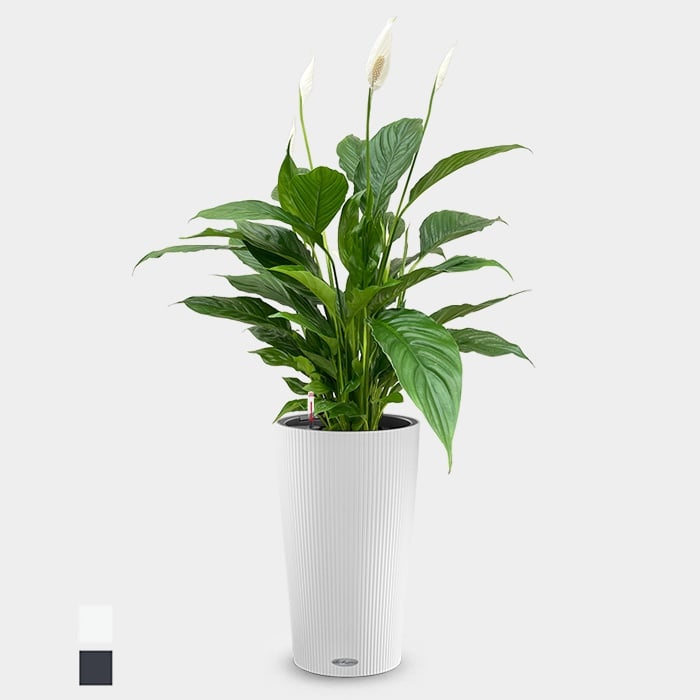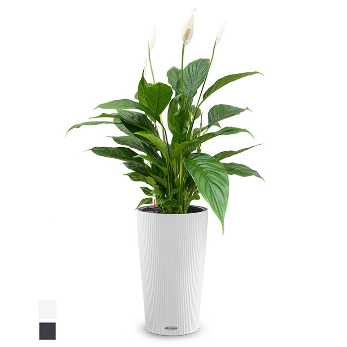 Ces pots de fleurs disposent d'un système d'arrosage avancé pour une hydratation optimale. Ce système régule la quantité d'eau fournie à la plante. Ainsi, vous ne pouvez jamais donner trop ou trop peu d'eau à la plante. Grâce à un indicateur de niveau d'eau pratique, vous pouvez facilement voir quand le réservoir doit être rempli. Les pots de fleurs sont livrés avec un kit d'arrosage pour terreau. Le bac intérieur et le distributeur d'eau sont inclus. Une fois votre plante installée dans ce pot de fleurs, vous n'aurez plus à vous soucier de rien !