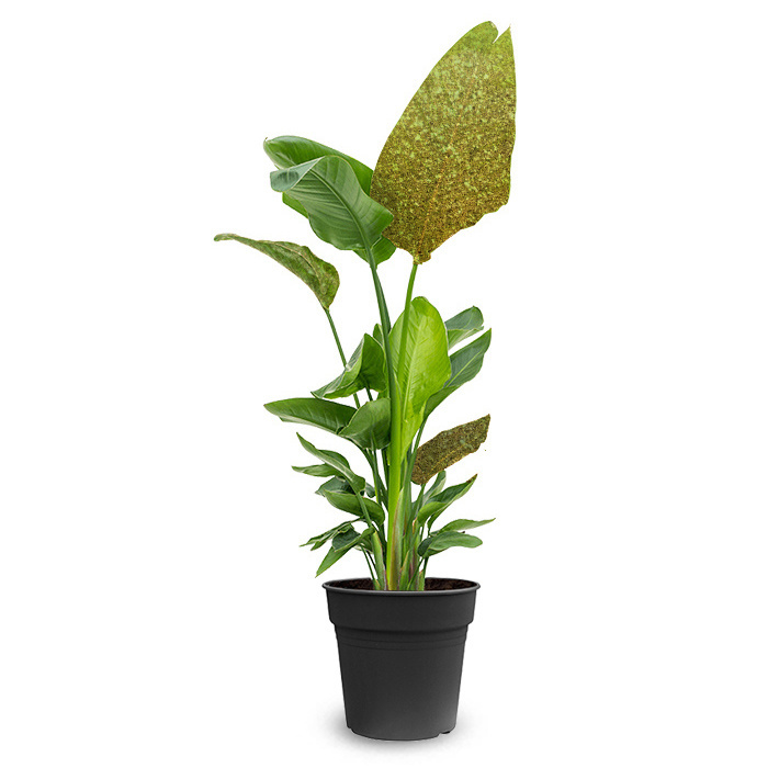 En exclusivité chez Fleurdirect, vous pouvez commander un strelitzia avec quelques feuilles dorées. Les feuilles dorées donnent un effet unique à la plante. Très original pour Noël. Quelques feuilles sont dorées pour vous sur le dessus. Cela n'a aucun effet nocif sur la plante. Les nouvelles feuilles seront simplement vertes. L'entretien de cette plante n'est pas différent de celui d'un strelitzia normal. En raison du processus naturel de cette plante lors du déroulement des feuilles, celles-ci peuvent se déchirer. Cela donne à la plante un aspect robuste et botanique.