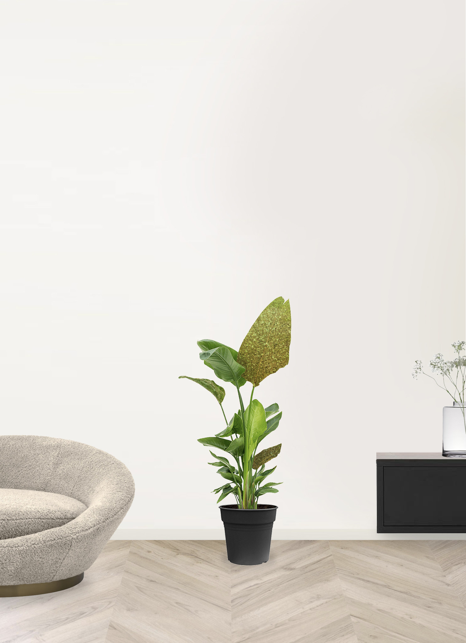 Le Strelitzia est une plante extrêmement populaire grâce à ses magnifiques éventails, ses feuilles imposantes qui poussent vers le haut. Cette plante est donc souvent un point d'attraction dans la pièce et apporte une ambiance jungle à l'intérieur.